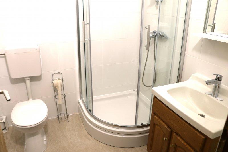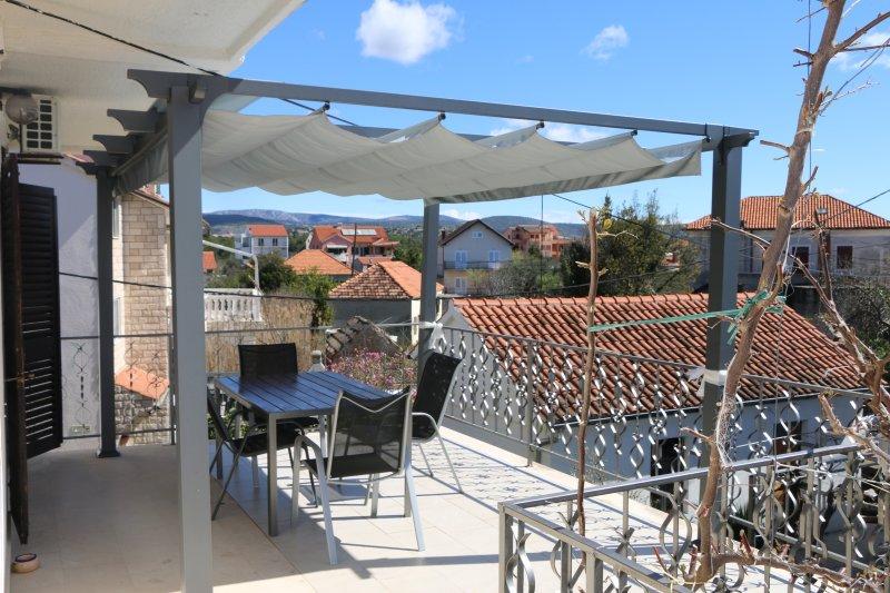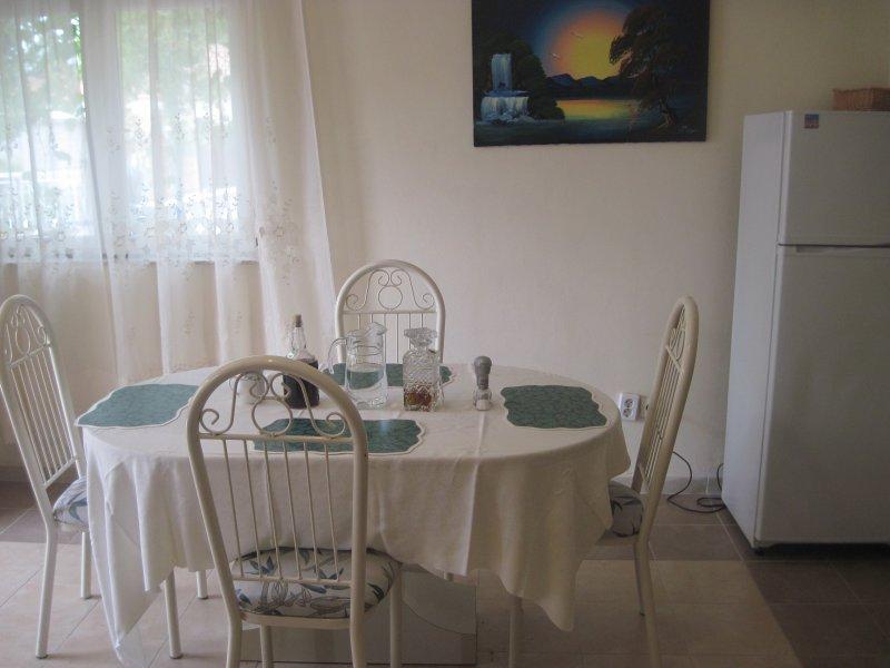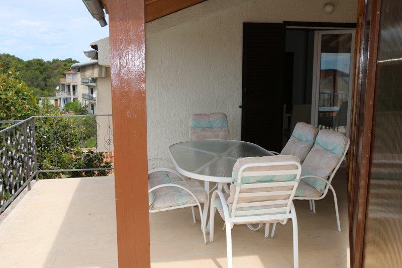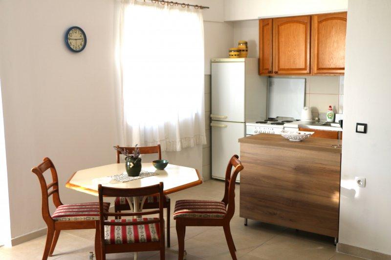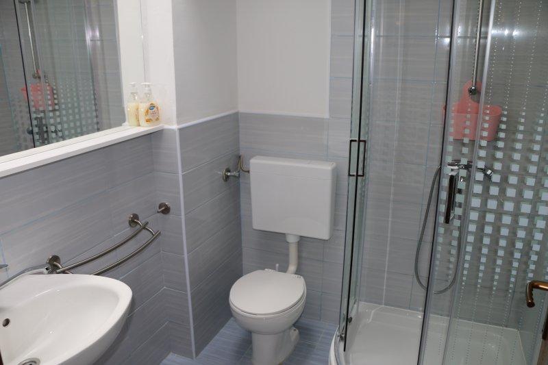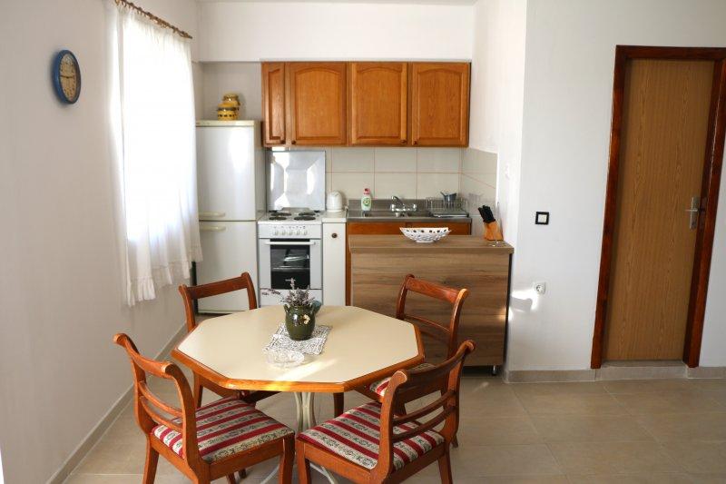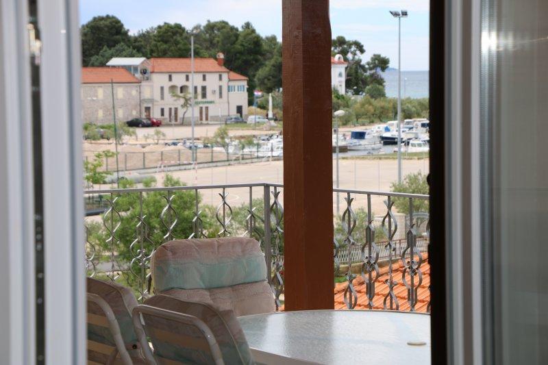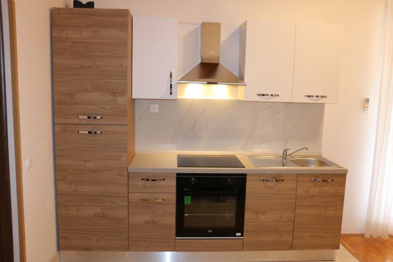 Fuldt udstyrede lejligheder i centrum af Zablac, 50 meter fra havet og 200 meter fra stranden, på den sydlige side af cementstranden inden for den gamle fyrreskov og på vestsiden af sten - (naturlig) strand. En ti-minutters gåtur adskiller lejlighederne fra SOLARIS Hotel Complex og inden for de samme 2 kilometer med fremragende dekorerede strande med en række faciliteter til sport og rekreation samt gastronomiske og underholdende tilbud i løbet af dagen og natten. Fra disse få ord til at konkludere, at hver aldersgruppe kan imødekomme deres behov og nyde ferien i vores lejligheder. Alle lejligheder er fuldt udstyret med alt nødvendigt inventar for et behageligt ophold. Parkeringsplads foran huset.