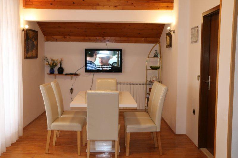 Hej familie Grgas Tucilo og varm anbefaling til alle dem, der vælger at bo i denne vidunderlige familie. De er slags beskedne, og de er altid der for dig. Lejligheden er et rent pænt rummeligt køkken udstyret med alt hvad du har brug for og mere end det. For dem, der ønsker at få det, de beder dem om ikke at give falske løfter, er dette den rigtige adresse. Alt det, vi var enige med Mr. Ivica, var op til den sidste detalje. For større virksomheder er der en kro, hvor pejsen er bygget, og den samme har alt hvad du har brug for fra køkkenredskaber adskilt fra lejligheden, så glæde og nydelse kan vare længe om natten uden at hindre nogen. Endnu en gang tak og tak. Vi ses næste sommer. Zdenko Vlatka Aco og Nikola