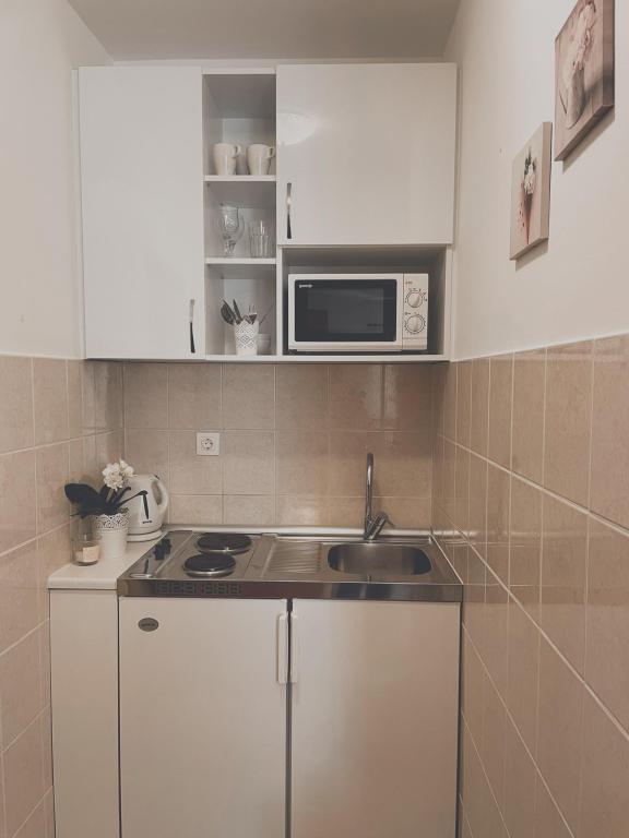 Apartments Tin&Tin er beliggende i Zablaće (5 kilometer fra centrum af Šibenik), kun 30 meter fra havet og stranden. En omhyggeligt indrettet have med springvand og grill har siden 2001 givet vores gæster en behagelig dag- og aftenstemning. Tæt på det luksuriøse turiststed "Solaris", den nybyggede promenade og cykelsti langs St. Canal. Ante og fæstningen St. Nikola, de er en mulighed for hvile og rekreation. Inden for 300 meter fra lejligheden er der en butik, bageri, caféer, restauranter, pizzeria, legeplads...