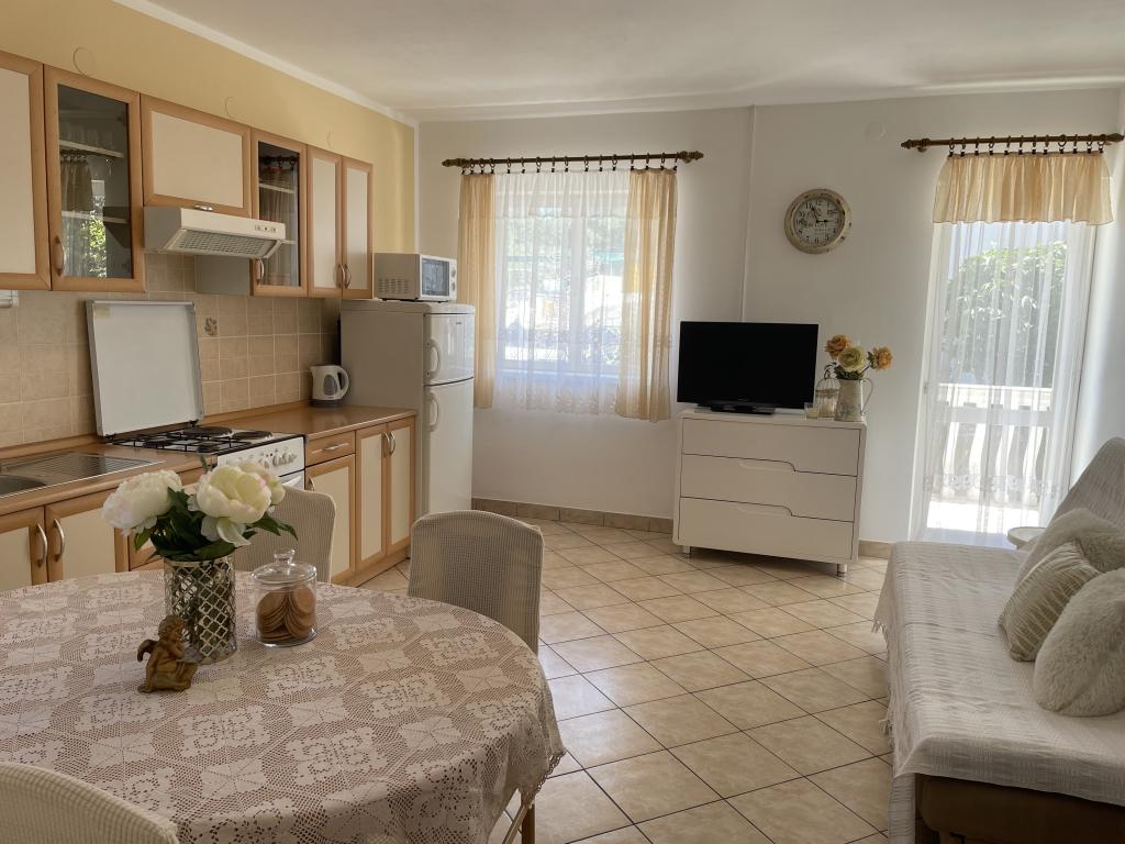 Vi boede i en stor ovenpå lejlighed, der er så smukt dekoreret, alt som nyt, upåklagelig renlighed, bogstaveligt talt alt som det blev sagt, så det var. Rummelig terrasse, havudsigt, strand kun få skridt væk, stille, afslappende... vi kunne ikke passere bedre, vi har ingen ord. Tak for alt, vi håber at se dig igen om et år. Vores anbefalinger til alle!!