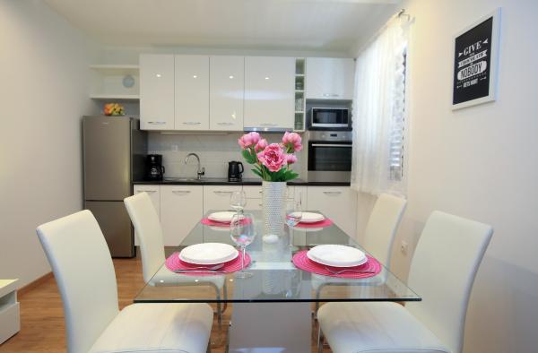 Turistskat er inkluderet i prisen.Gratis parkering, Gratis trådløst internet, Brugen af aircondition er opkrævet (fem e per nat), Kæledyr er udelukkende tilladt og kun i lejligheder nr. 1, nr. 2 og nr. 3 og mod et tillæg, Mulighed for leje af forbindelser til båd, Mulighed for leje af båd med guide til rundvisning på de omkringliggende øer, Mulighed for transport til busstation, tog, lufthavn osv., Muligheden for at bruge grillen, Muligheden for at tilbereder forskellige dalmatiske specialiteter… Inden for 300 meter fra lejligheden er der butikker, bagerier, caféer, restauranter, pizzeria, legeplads