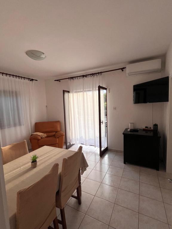 Velkommen til vores lejlighed beliggende i et roligt og malerisk område af Žaborić, kun 50 meter fra havet! Lejligheden ligger i stueetagen af et familiehus og tilbyder fuldstændig privatliv, fred og komfort - ideel for børnefamilier, men også for alle dem, der ønsker at nyde en ubekymret ferie ved Adriaterhavskysten. Om lejligheden: Den ligger kun 50 m fra havet, med en rummelig terrasse, den har et privat solbadningsområde under terrassen, en stor indhegnet have (ca. 200 m²) - et perfekt sted for børn at lege eller nyde morgenkaffe i skyggen med fuglesang, gæsterne kan forsyne sig gratis med hjemmelavet sæsonfrugt fra haven - saftige figner og søde druer, stranden er indhegnet og sikker - væk fra veje og alle motorkøretøjer, hvilket gør den ideel for børn, privat parkering til 2 køretøjer inde i gården, hurtig og gratis WiFi, tv med over 100 kanaler. Kun 100 m fra lejligheden er der et bageri med dagligt friskbagte kager og varmt brød. Kæledyr er ikke tilladt.