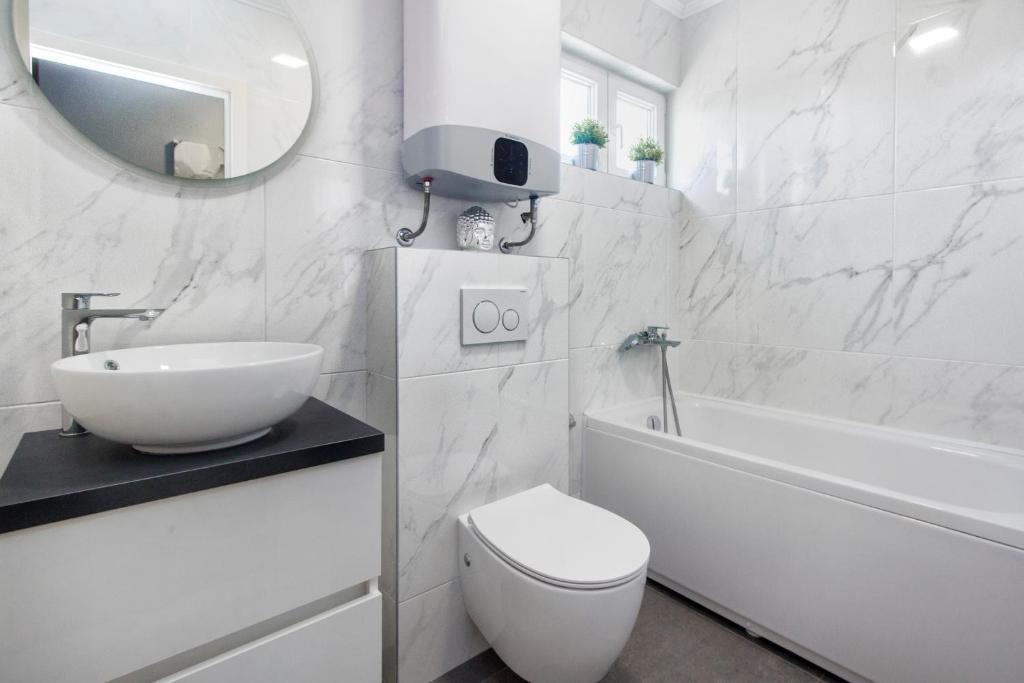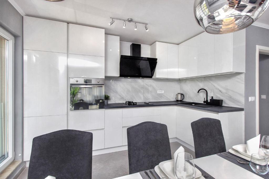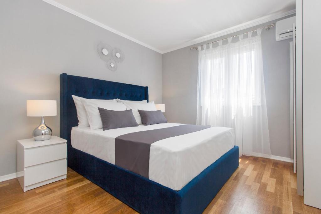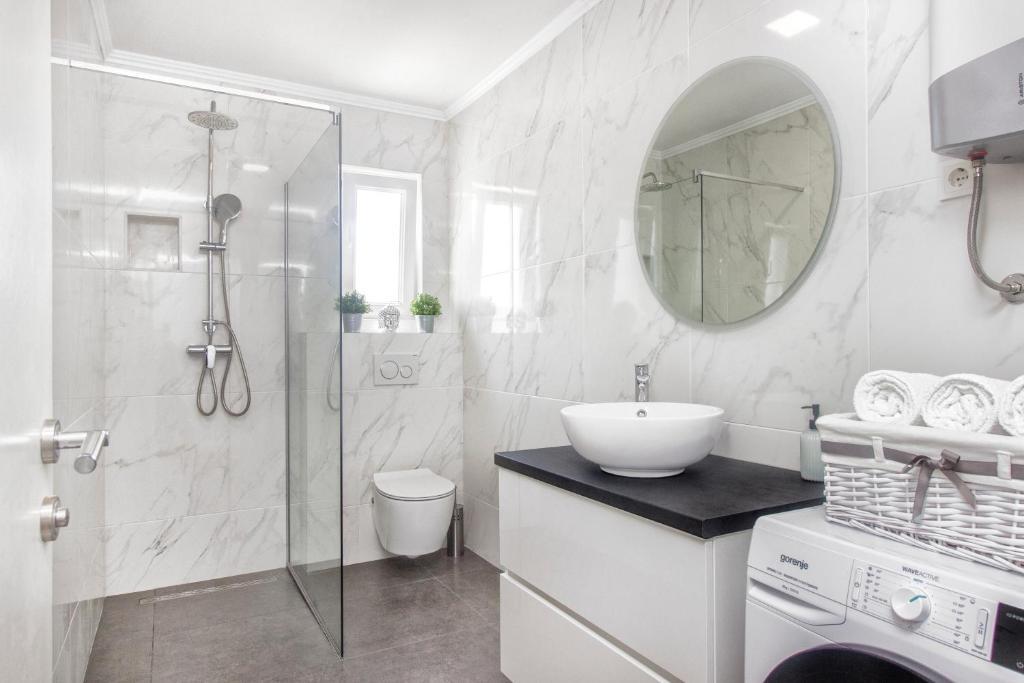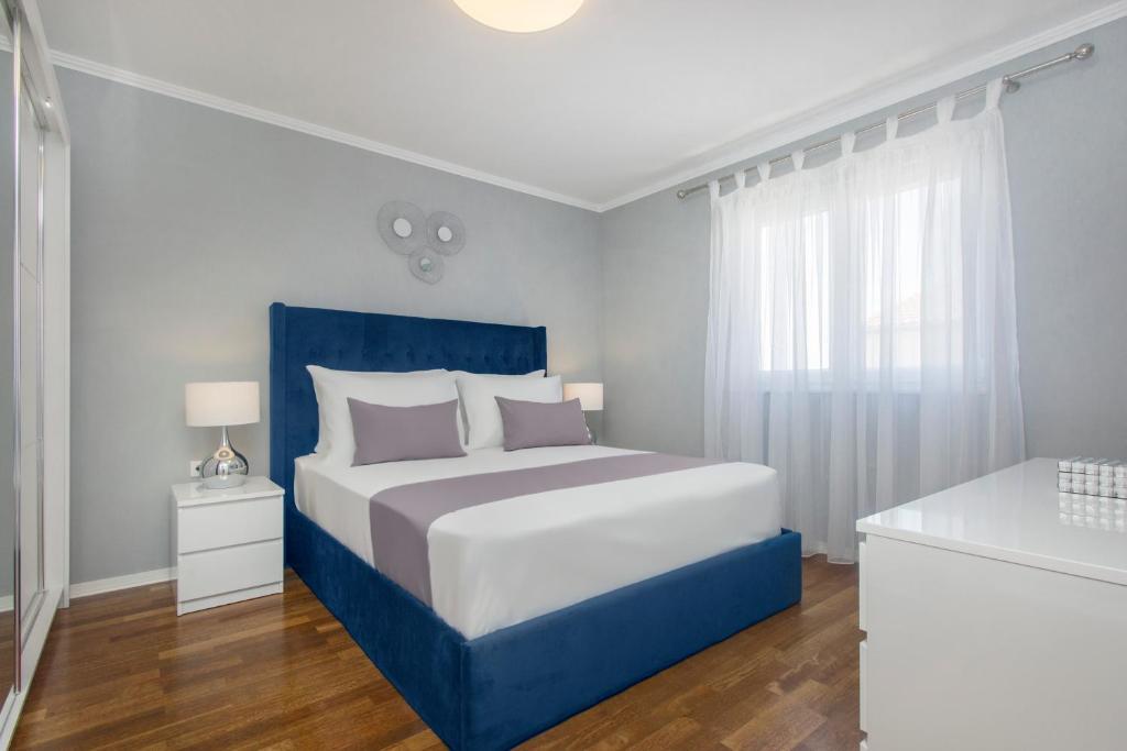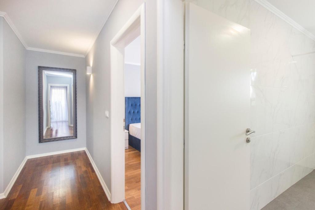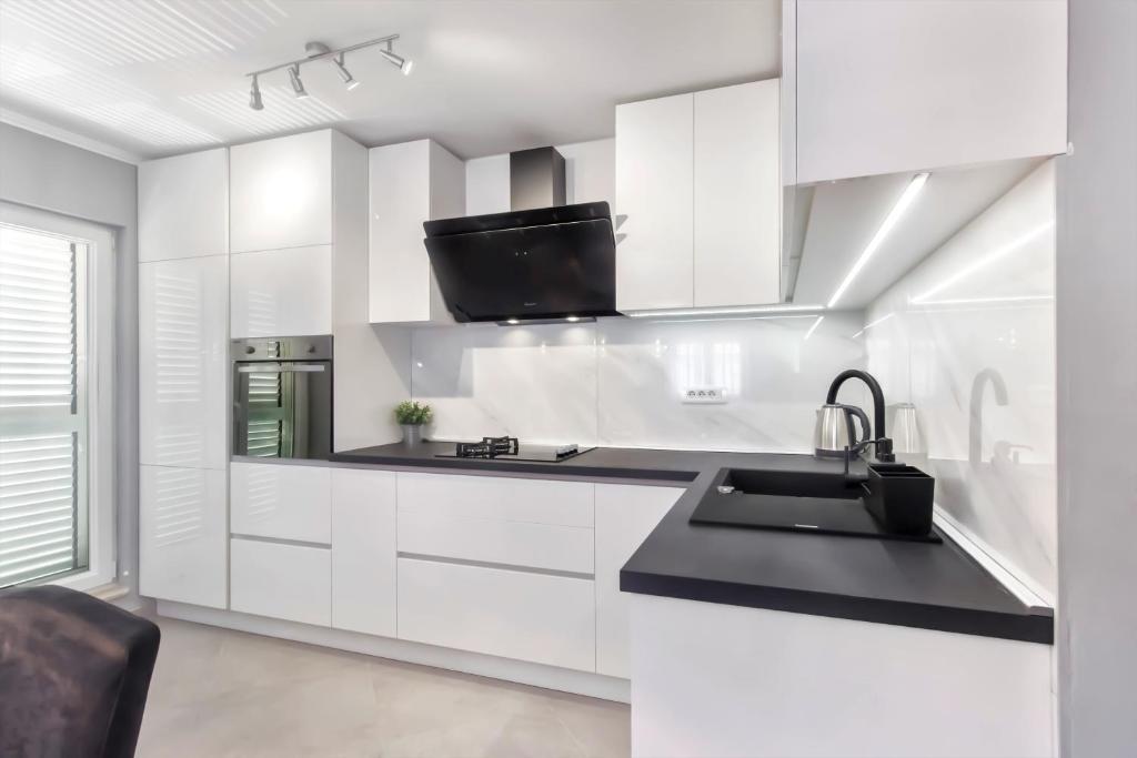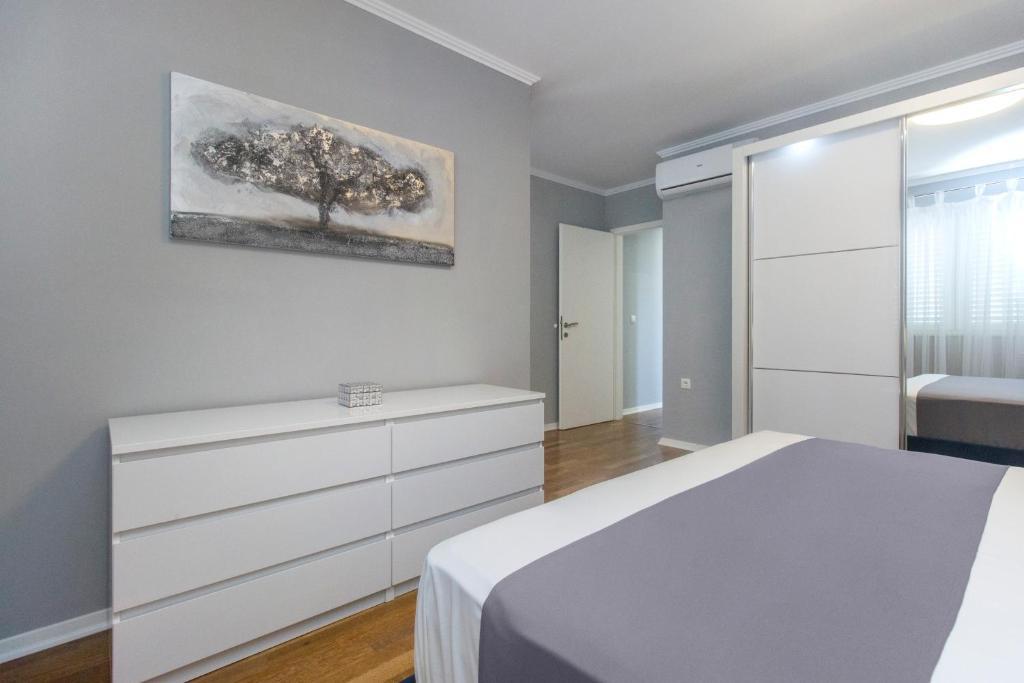 Ny penthouse lejlighed, udlejes for første gang. Lejlighedens areal er 95 m2, bygningens sidste etage. Lejligheden har: 2 store soveværelser, 2 badeværelser, fuldt udstyret køkken, ovn, vaskemaskine, opvaskemaskine, 3 klimaanlæg, internet, satellit-tv, 160 cm smart-tv. Det maksimale antal gæster i lejligheden er 5. Lejligheden ligger få minutters gang fra stenstranden og Jasenovo autocamp. Sikker privat parkeringsplads. Velkommen!