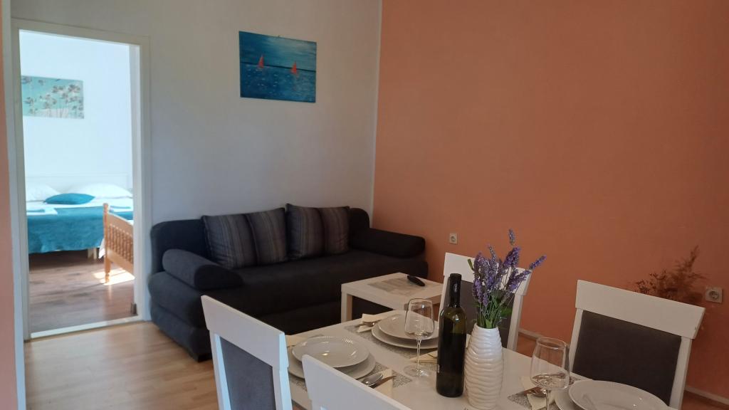 Josipas lejlighed ligger i en lille by i Morinjska zaljev, hvor du kan nyde havet, solen og lyden af græshopper. Blot 10 km væk kan du udforske byen Šibeniks rige historie og kulturelle arv. Lejligheden består af et soveværelse med 3 senge, en stue med en sofa, der kan laves om til en ekstra seng, et lille køkken med spisestue og et badeværelse. Foran er der en terrasse på 15 m2 dekoreret med blomster og grønt, samt en større have med sikret parkering.