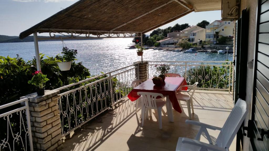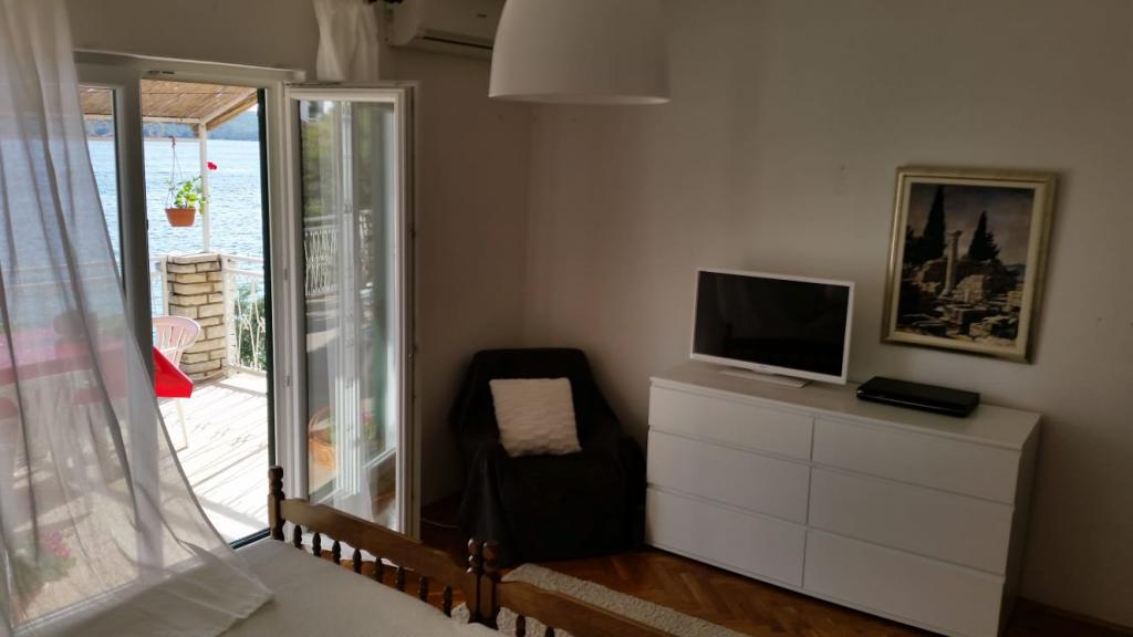 Huset ligger virkelig lige ud til kysten ud til en lille, næsten privat strand. Hvis du rejser med børn, kan du se dem fra balkonen, mens de svømmer i havet. Udsigten fra hvert værelse er fantastisk og beroligende. Det er stille og fredeligt om natten. Lejligheden er rummelig og komfortabel med to klimaanlæg. Køkkenet er også udstyret til dem, der kan lide at lave mad, mens de er på ferie. To butikker kun få minutter væk. Ejerne er specielle i den bedst mulige forstand. Hvis du "savner" noget, leverer værtinden Sandra det på meget kort tid. De vil give dig alt for at få dig til at føle dig hjemme. En simpel kvinde med et stort hjerte. Vi vil være tilbage næste sommer.