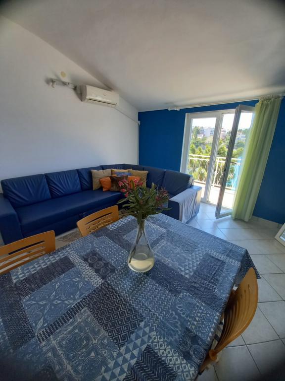 Vi tilbragte de sidste 2 uger af august 2022 i lejligheden "blå" og kan varmt anbefale det til dem, der leder efter en fredelig familieferie så tæt på havet som muligt og foretrækker rolige steder på samme tid. Udsigten fra balkon, soveværelser og stue er simpelthen uforglemmelig. Vi ville være tilbage der med glæde.