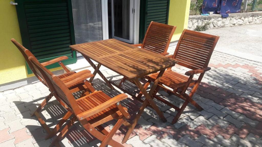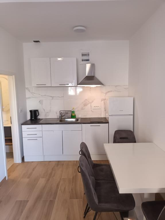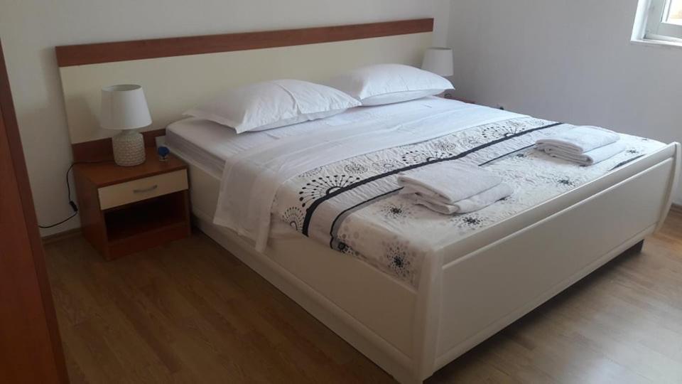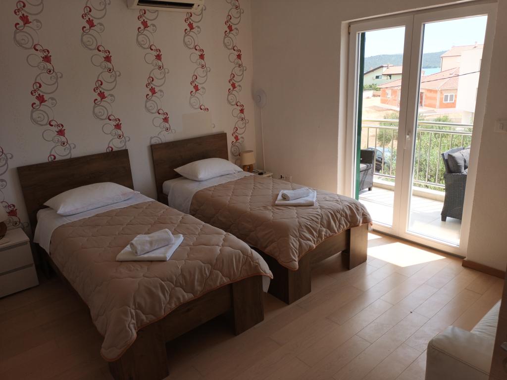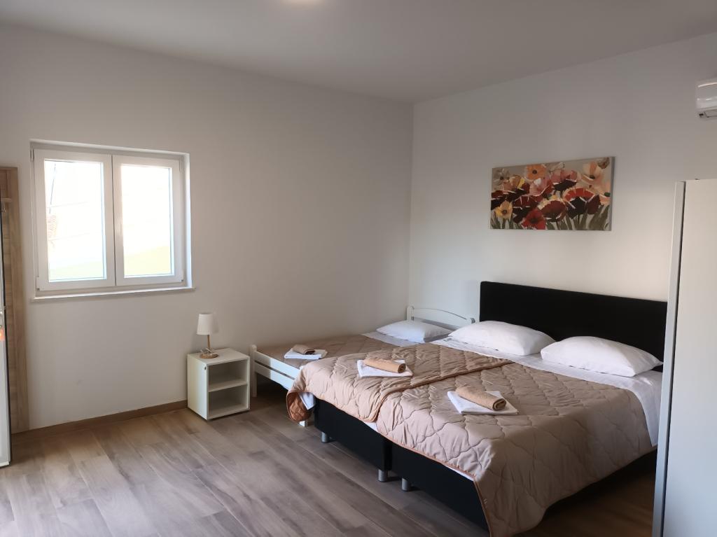 Læs mere IndkvarteringsenhederLejlighed A 5+2 ID 79415 ligger på første sal og har: to soveværelser, det ene med en stor dobbeltseng, det andet med 3 senge til en person, et køkken med en stue, hvori der er en sovesofa til to personer, 2x badeværelser og en balkon med bordet. Lejlighed A 3+2 ID 79447 ligger på første sal og har: et soveværelse med en stor dobbeltseng + seng til en person, et køkken med en stue hvori der er en sovesofa til to personer, 2x badeværelser og en balkon med bord. Studielejlighed A 2+1 ID 79448 ligger i stueetagen og har: dobbeltseng + enkeltseng, køkken, badeværelse og terrasse med bord. Studiolejlighed A 2+0 ID 79449 er beliggende i stueetagen og har: en dobbeltseng, et køkken, et badeværelse og en terrasse med et bord. Forudbetaling af reservationen er 20% forud til lejers bankkonto, resten ved ankomst. Forskudsbetalingen kan ikke refunderes. Indtjekning er fra kl. 15.00, check ud indtil kl. 10.00.