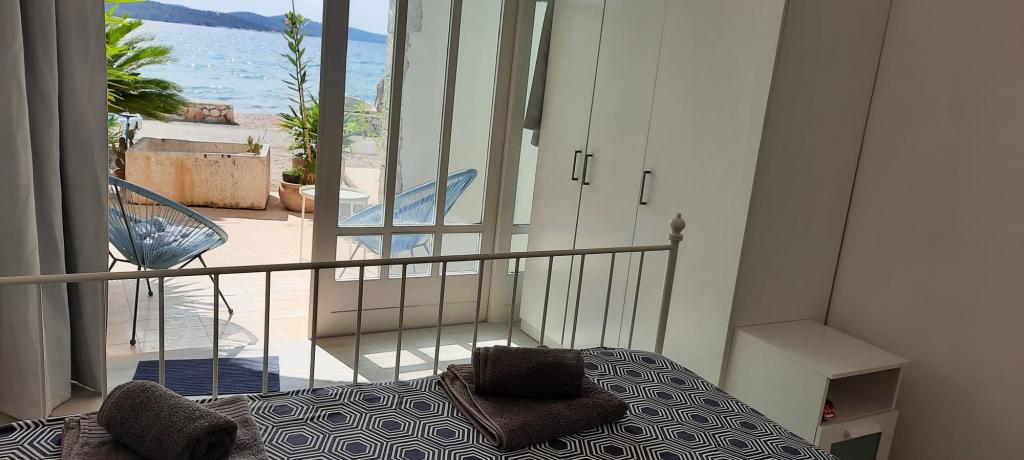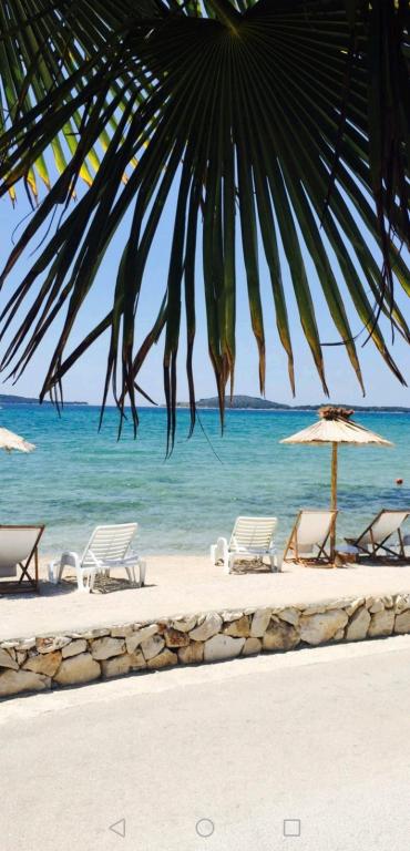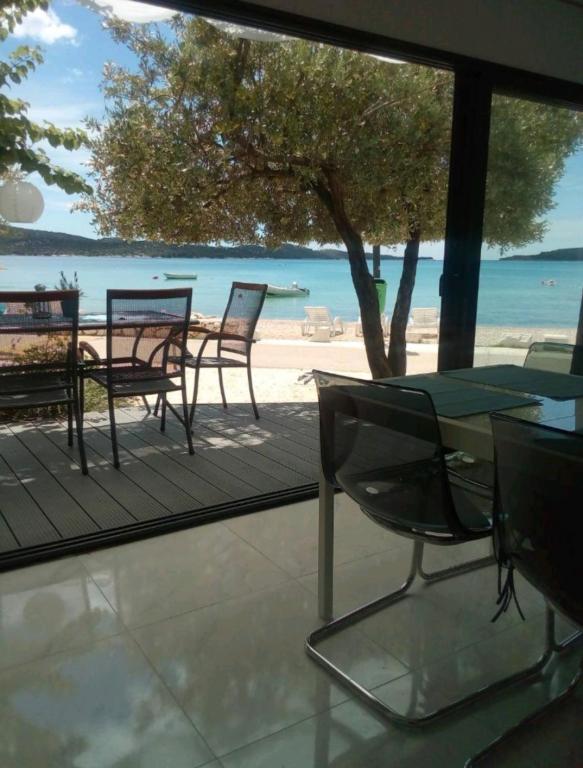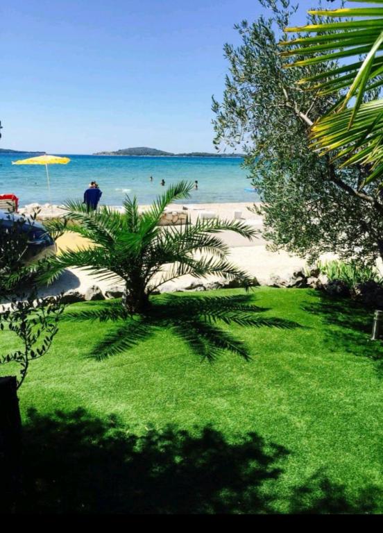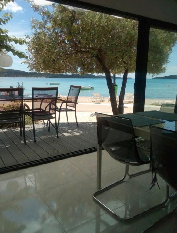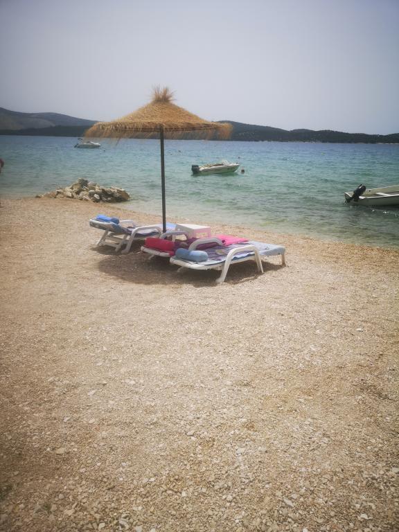 Komplet og moderne udstyrede lejligheder i et roligt sted Zaboric nær Sibenik, der ligger første række mod havet. Stranden ligger lige foran bygningen i en afstand af 5 meter fra lejligheden. Alle lejligheder har havudsigt. Alle lejligheder er udstyret med alle husholdningsapparater fra opvaskemaskine, vaskemaskine, mikroovn, komfur, ovn, kedel, køleskab med fryser, TV SAT, WI-FI internet, hårtørrer, brødrister. Nogle lejligheder har en ismaskine. Alle lejligheder har gratis parkering og gratis brug af grill i haven samt gratis strandstole. Kæledyr er tilladt. Mulighed for at bruge køjer til en båd op til 7 meter og parkering til en trailer. Barneseng på anmodning. Gæsterne kan slappe af på en hængekøje i skyggen af haven. Det er muligt at leje en båd og jetski ved siden af huset. Der er en vand-trampolin til børn i nærheden samt en land-trampolin.