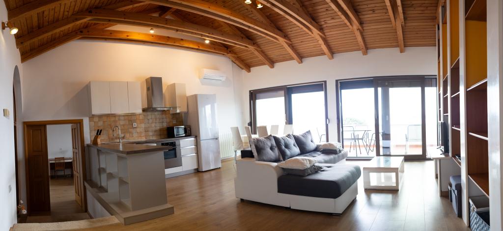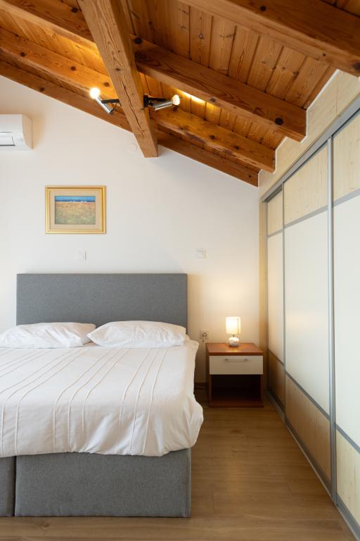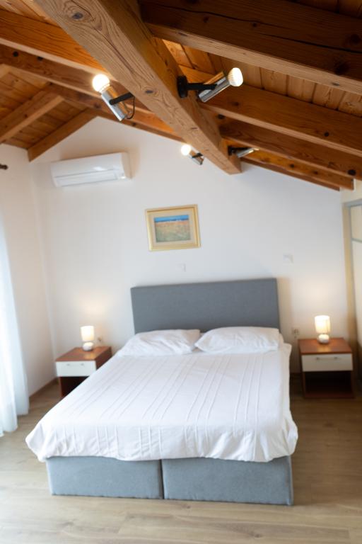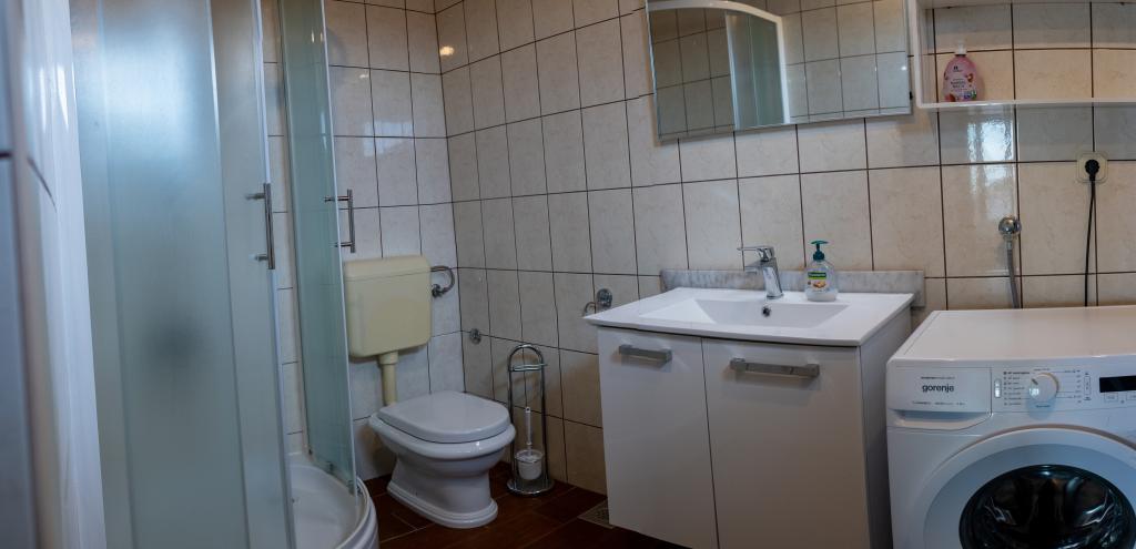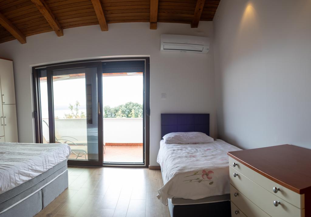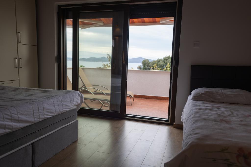 Rummelig 3-værelses lejlighed (100 m²) på 2. sal i det rustikke hus Anica, beliggende i det rolige Diklo, kun 6 km fra Zadars centrum og 100 m fra havet. Lejligheden er udstyret med en stor stue og spisestue (38 m²) med satellit-tv, aircondition og adgang til en terrasse med havudsigt. To komfortable soveværelser tilbyder fleksibel indkvartering - det ene med en dobbeltseng, det andet med en enkeltseng og en dobbeltseng samt eget bad/toilet. Begge har aircondition og adgang til en terrasse. Det fuldt udstyrede åbne køkken har ovn, opvaskemaskine, keramisk kogeplade, mikrobølgeovn og kaffemaskine. Et ekstra bad/toilet og en vaskemaskine er til rådighed for gæsterne. Tre sydvendte terrasser, udstyret med møbler, tilbyder havudsigt og er perfekte steder at slappe af. Parkering til to biler på grunden.