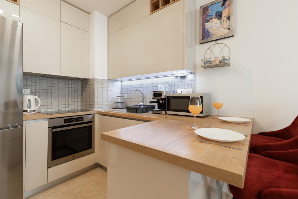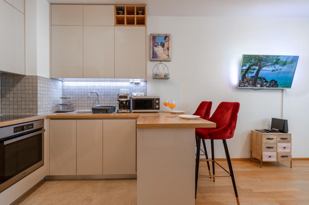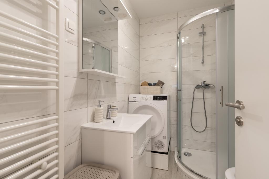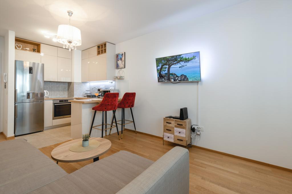 Nyd en komfortabel og moderne indrettet lejlighed til to personer, perfekt til et afslappende ophold i smukke Zadar. Lejligheden er ideel til par, forretningsrejsende eller aktive rejsende, der ønsker at være tæt på byens centrum samt sportsfaciliteter. Lejligheden har en fremragende beliggenhed - kun femten minutters gang fra byens centrum, mens Višnjik Sportscenter kun ligger 200 meter væk. Der er også store Lidl- og Kaufland-indkøbscentre i nærheden, som du kan nå til fods. En særlig fordel ved lejligheden er en privat parkeringsplads lige ved siden af bygningen, kun få meter fra vinduet, hvilket er en sjældenhed i en bydel af byen. Beliggenheden giver mulighed for et roligere ophold væk fra byens folkemængder, men giver alligevel mulighed for en nem gåtur til byens centrum. Start morgenen med en gåtur mod den gamle bydel, tilbring dagen ved havet eller på Višnjik Sportsbaner, og slap af om aftenen i fred og ro i din egen lejlighed.