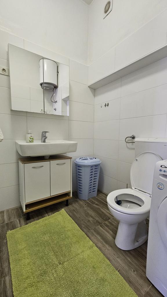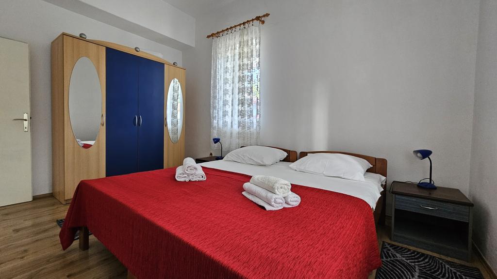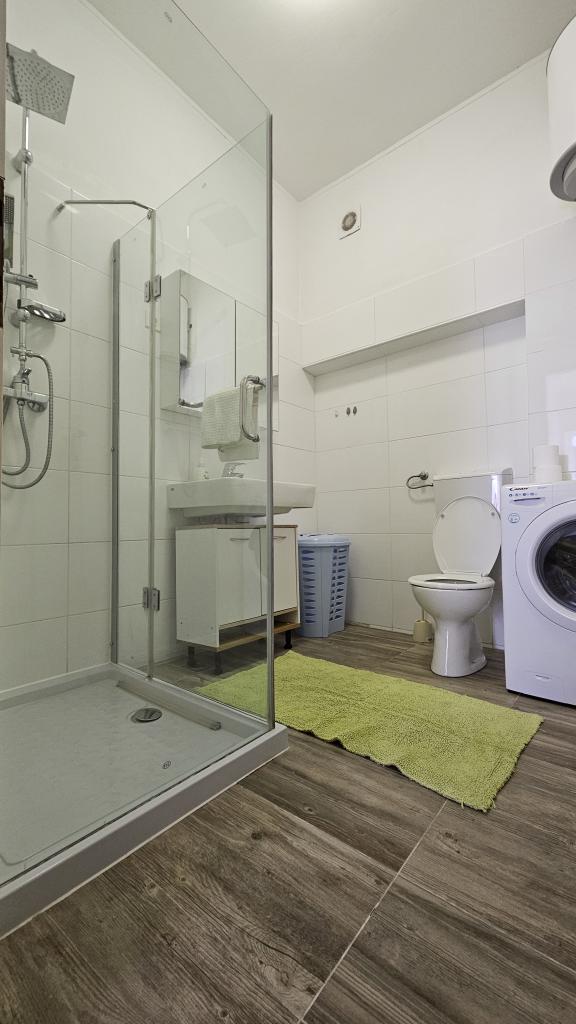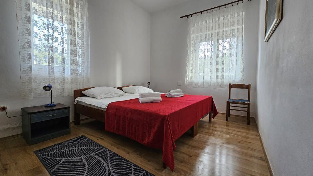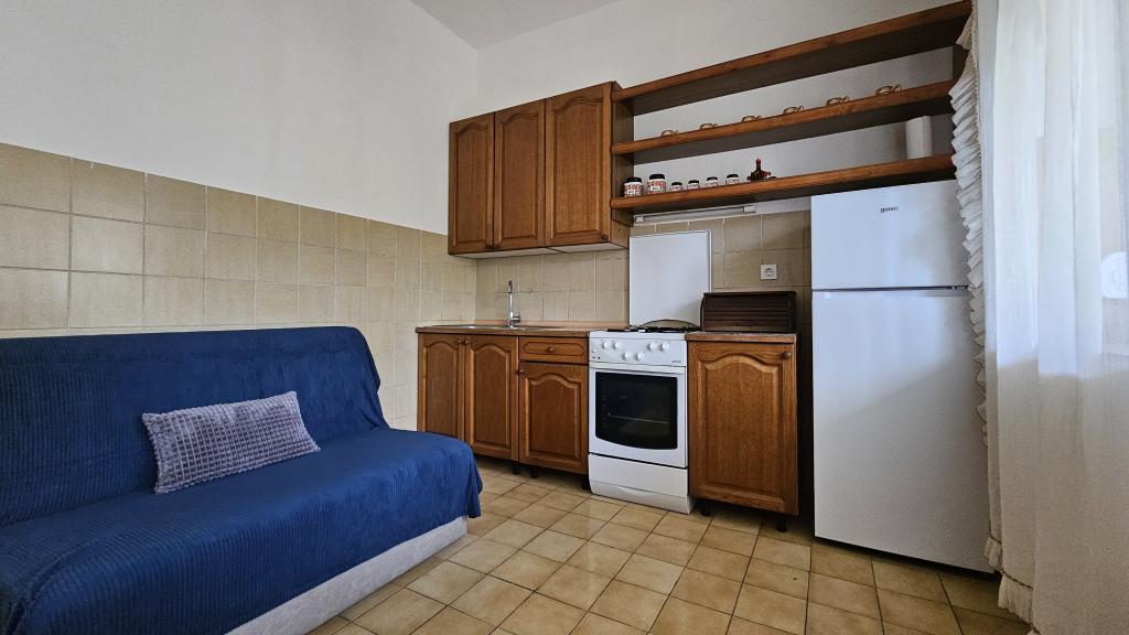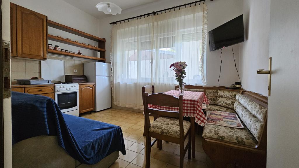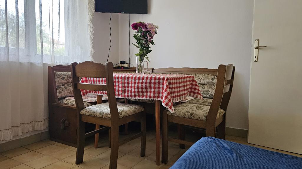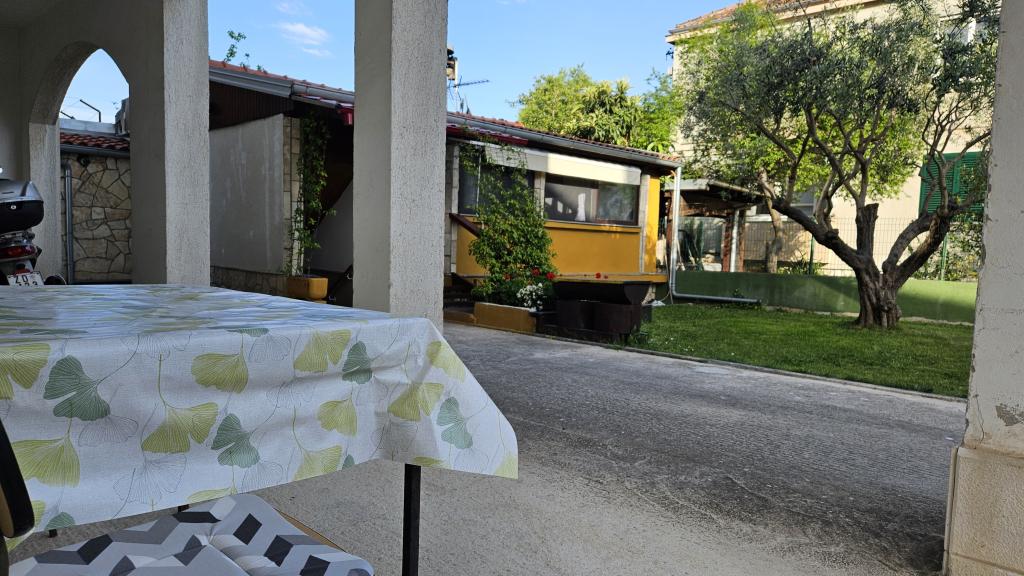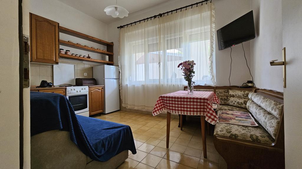 Lejligheden er beliggende i en rolig del af byen, i et familiehus med flere boligenheder. Lejligheden ligger i stueetagen og har egen parkeringsplads. P-pladsen er åben i dagtimerne og lukkes efter kl. 22.00 med en jerndør, som man har nøgle til. Med lejligheden har du et bord til ophold ved haven. Marex-stranden med café, butik, restaurant, nyrenoveret børnepark ligger i umiddelbar nærhed, og du kan gå til byens centrum på cirka ti minutter. Faktisk er der meget lige ved hånden. Aircondition, TV, internet er til rådighed i bygningen. Indkvarteringen er designet til to personer plus mulighed for at bruge en ekstra udtræksseng til en tredje person, og en barneseng er også tilgængelig.