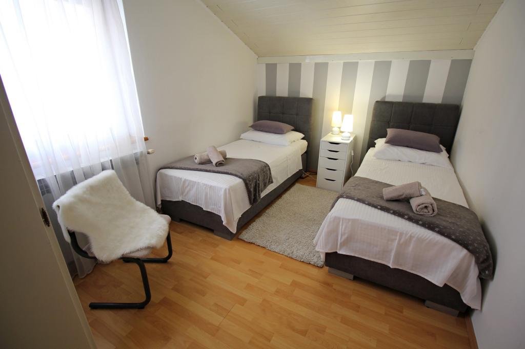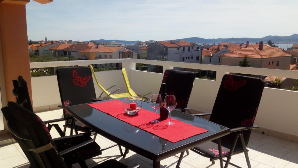 Apartment Neda ligger i Zadar, distriktet Borik. Vi ligger 10 minutters gang fra Ukok-stranden. Sandstranden i Borik (Falkensteiner) ligger 15 minutters gang derfra. det er en 25-minutters gåtur til byens centrum. Lejligheden er fuldt møbleret og har en skøn terrasse med udsigt over byen og havet. Lejligheden er beliggende på loftet i familiens hus, og der er adgang via fælles gang.