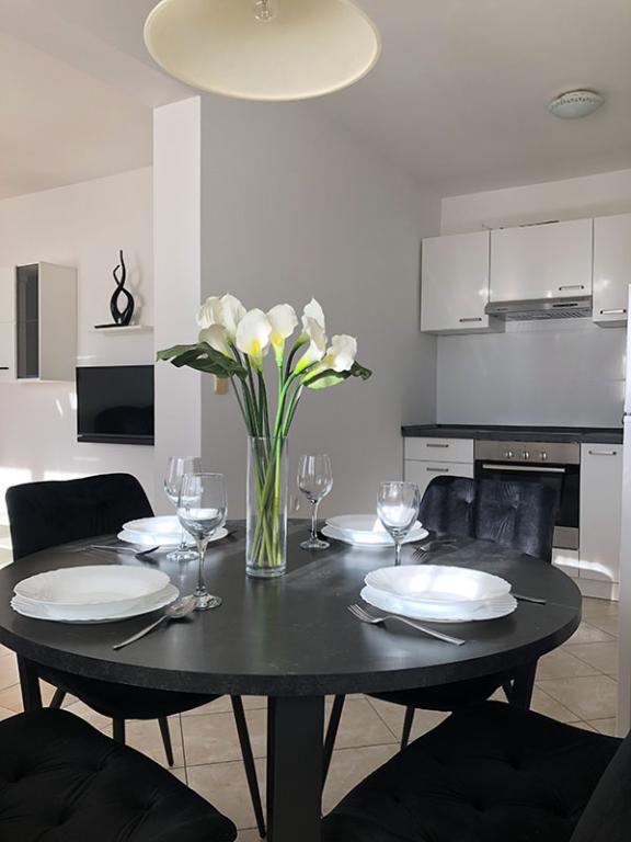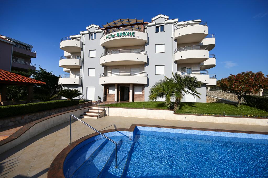 Fuldt udstyrede lejligheder i en rolig del af byen kaldet Diklo Lejlighederne har privat gratis parkering Gæsterne har adgang til swimmingpool Ejendommen ligger 5 minutters gang fra stranden Centrum ligger 10 minutter væk med bus eller bil.