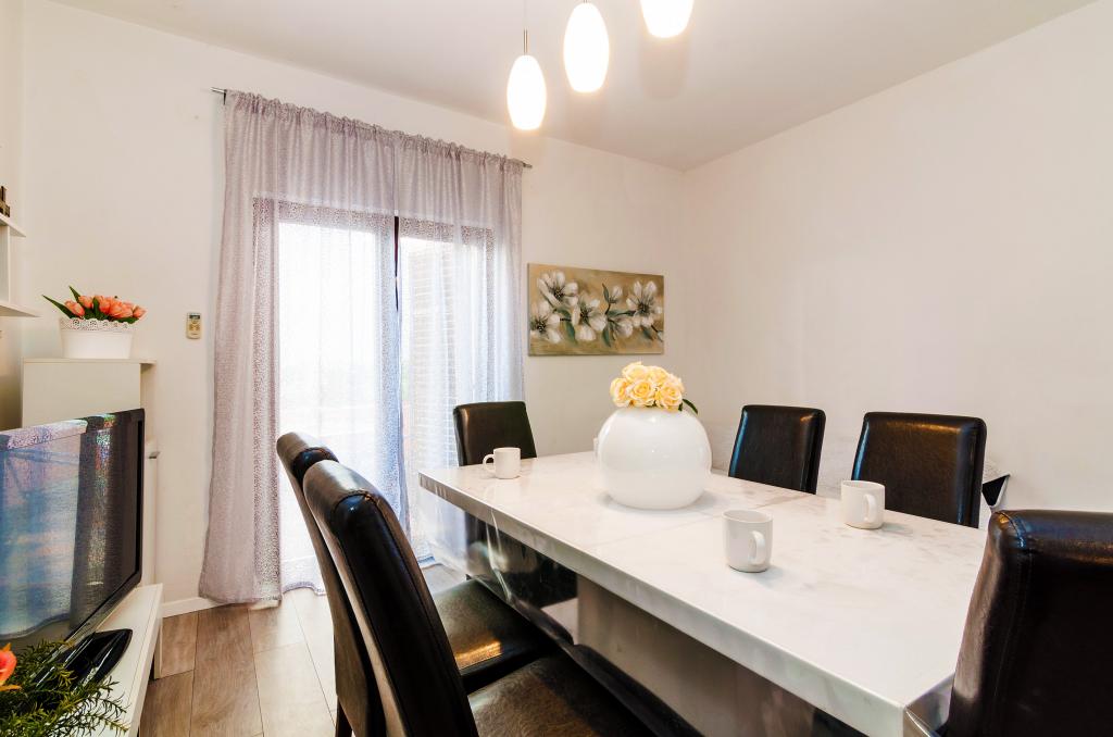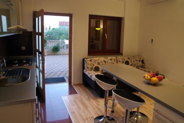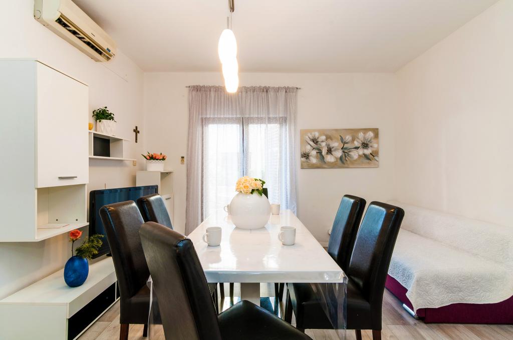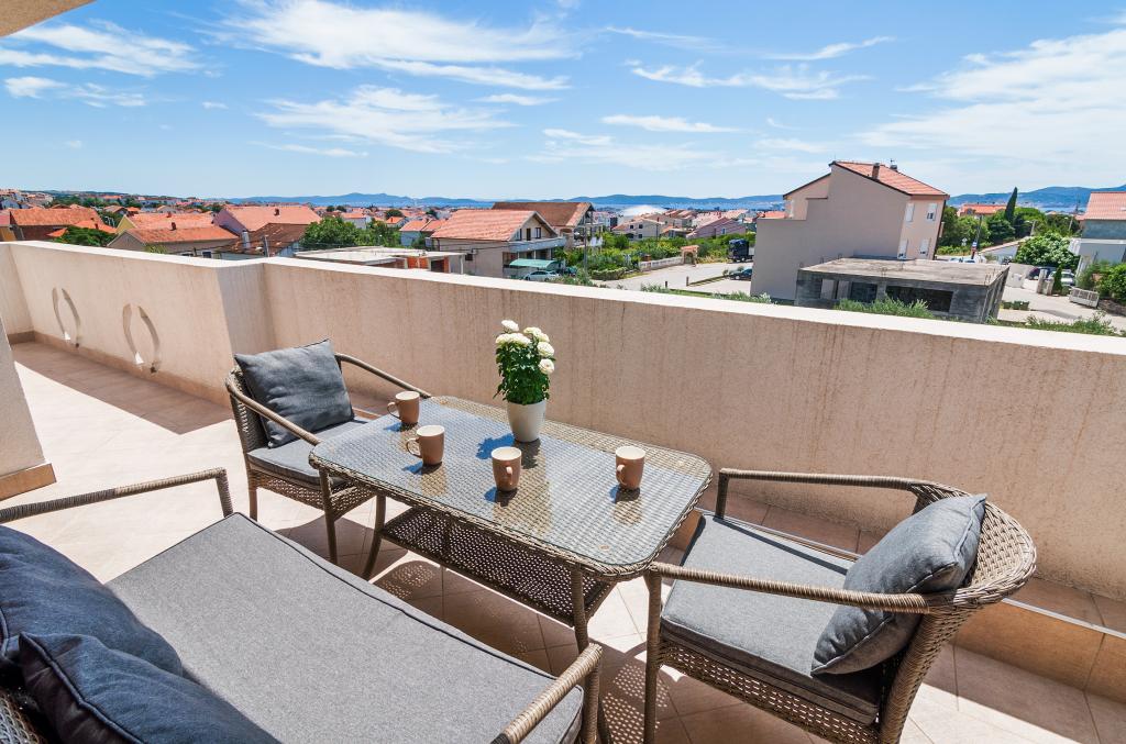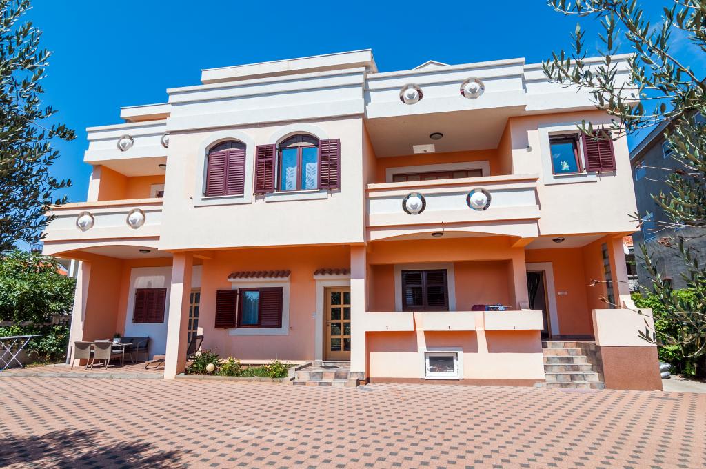 Flere lejligheder til leje i Zadar i lejlighedshuset Apartmani Anđelo. Lejlighederne er fuldt og moderne udstyret fra køkken, badeværelse, balkon ... Hver lejlighed har en parkeringsplads og kan bruge en stor terrasse med grill og ovn, der er ideel til socialt samvær. De er ca. 5-6 minutter væk fra stranden i bil og i samme afstand fra byens centrum. De er ideelle til unge, par og par med børn uden bystøj, og i nærheden findes der store indkøbscentre, en sportshal med tennisbaner, fodbold og andre sportsfaciliteter.