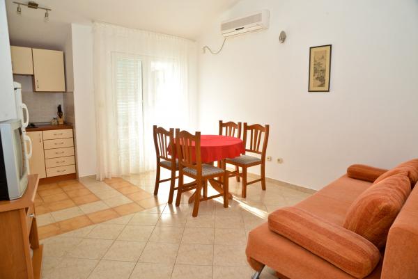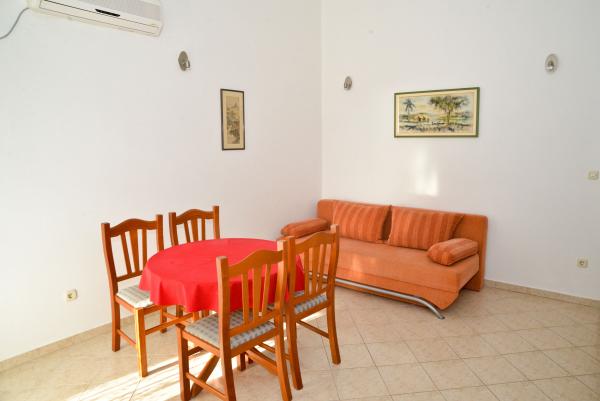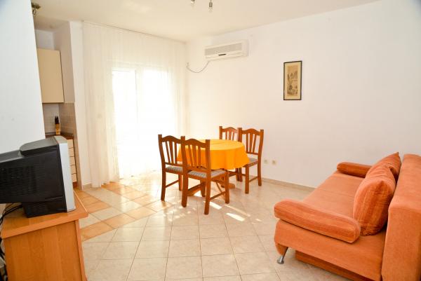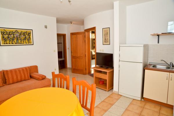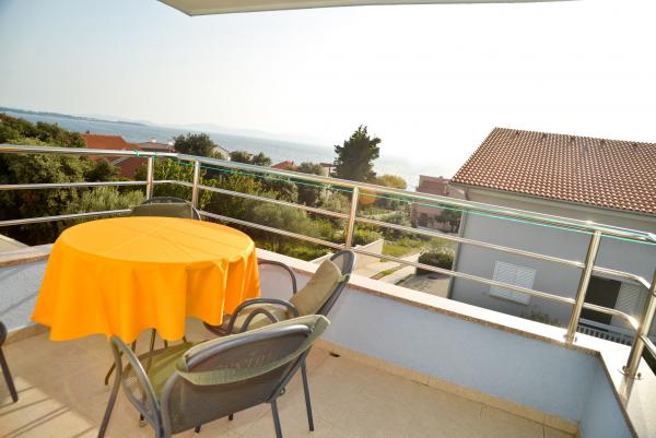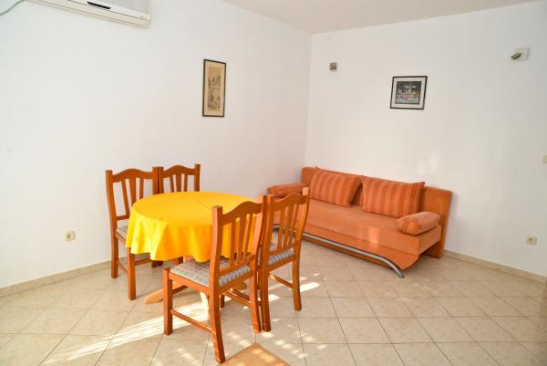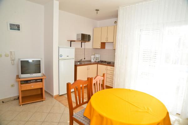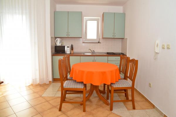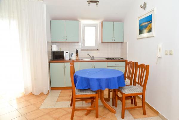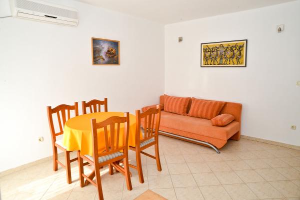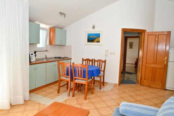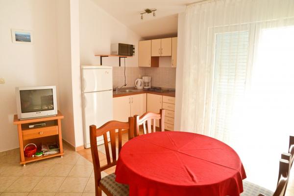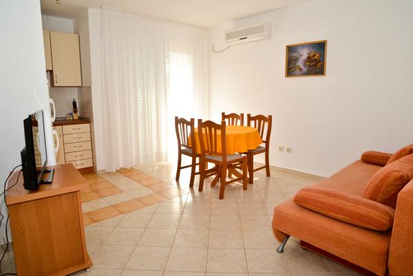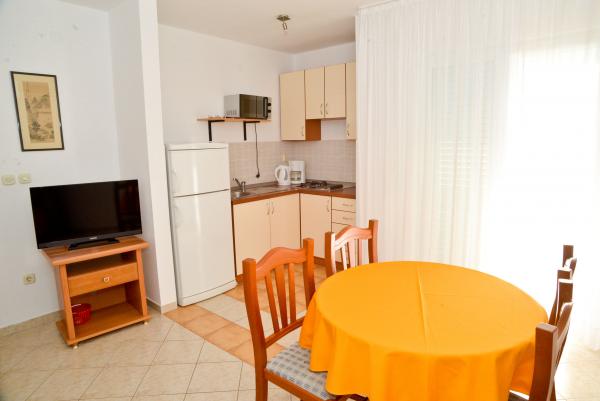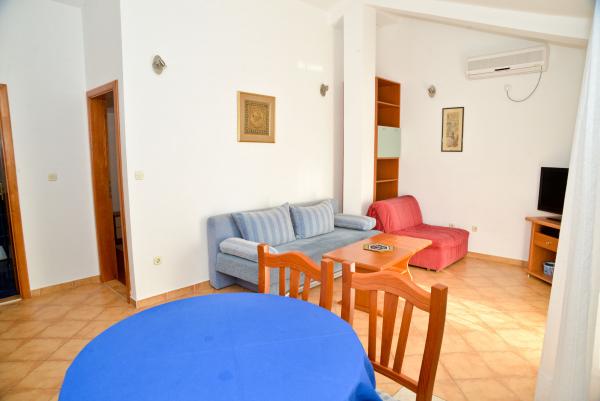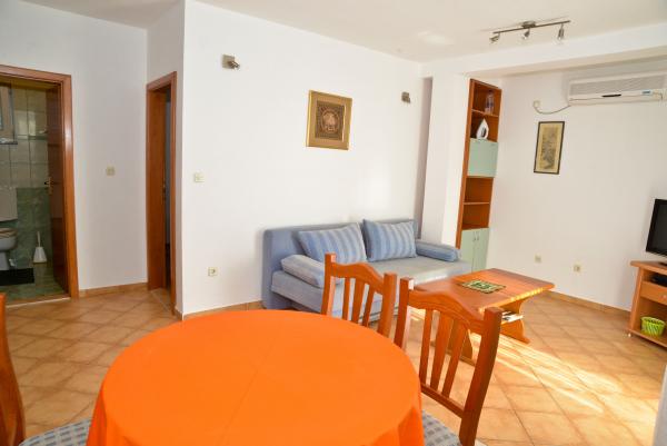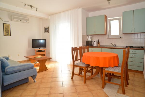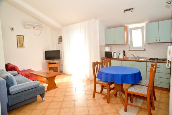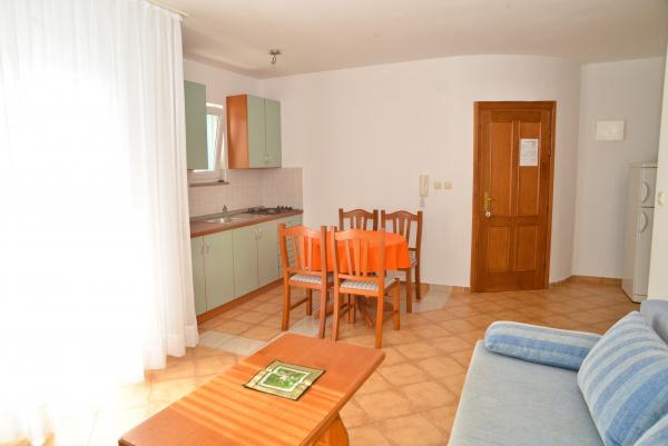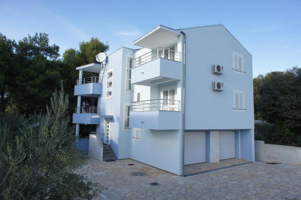 Blue Apartments, fuldt udstyret, beliggende i et roligt miljø, kun 70m fra stranden, vil tilbyde dig et behageligt miljø for afslapning og nydelse. Udsigt over havet og øerne fra balkonen er noget, du vil huske for en levetid. Blue Apartments ligger i huset og består af fem lejligheder hvoraf den ene er handicap tilgængelige. I gården er en grill, der er tilgængelig på alle tidspunkter. Parkering er til rådighed. Beach front er grus og egnet til børn i alle aldre, mens de voksne kan nyde de gratis liggestole og parasoller. Internetforbindelse er tilgængelig og gratis i lejlighederne og på stranden.