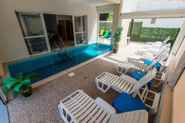 Vi er her for anden gang, og vi kan virkelig godt lide det. Lejlighederne er rene, fuldt udstyrede og rummelige, wellness og pool er fantastisk - et paradis for børn. I haven er der en grill til almindelig brug og et børnehjørne med hus og legetøj til leg. Ejeren af lejligheden er meget venlig, altid tilgængelig og forsøger at opfylde alle dine ønsker.