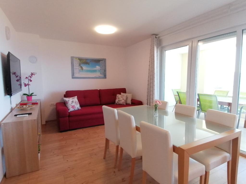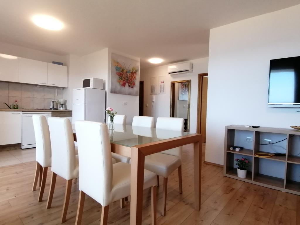 Dejlig, rummelig lejlighed med stor stue og to store terrasser. Det er nok for hele familien. Lejligheden er fuldt udstyret. Børnene elskede wellnes -området og poolen. Boris er en meget venlig person, han kunne med det samme hjælpe os med alt. Vi ses næste år! Tak for fødselsdagen chokolade og slik!
