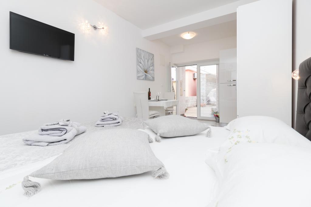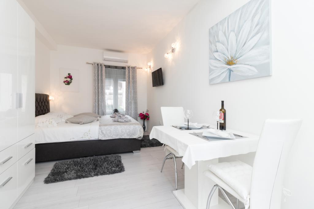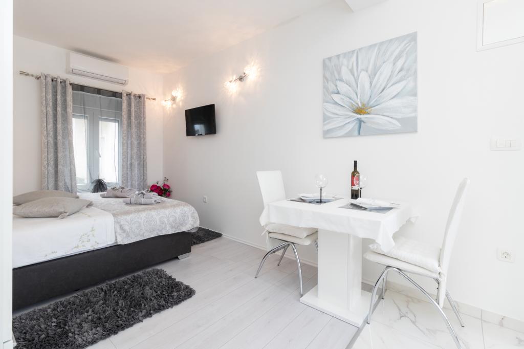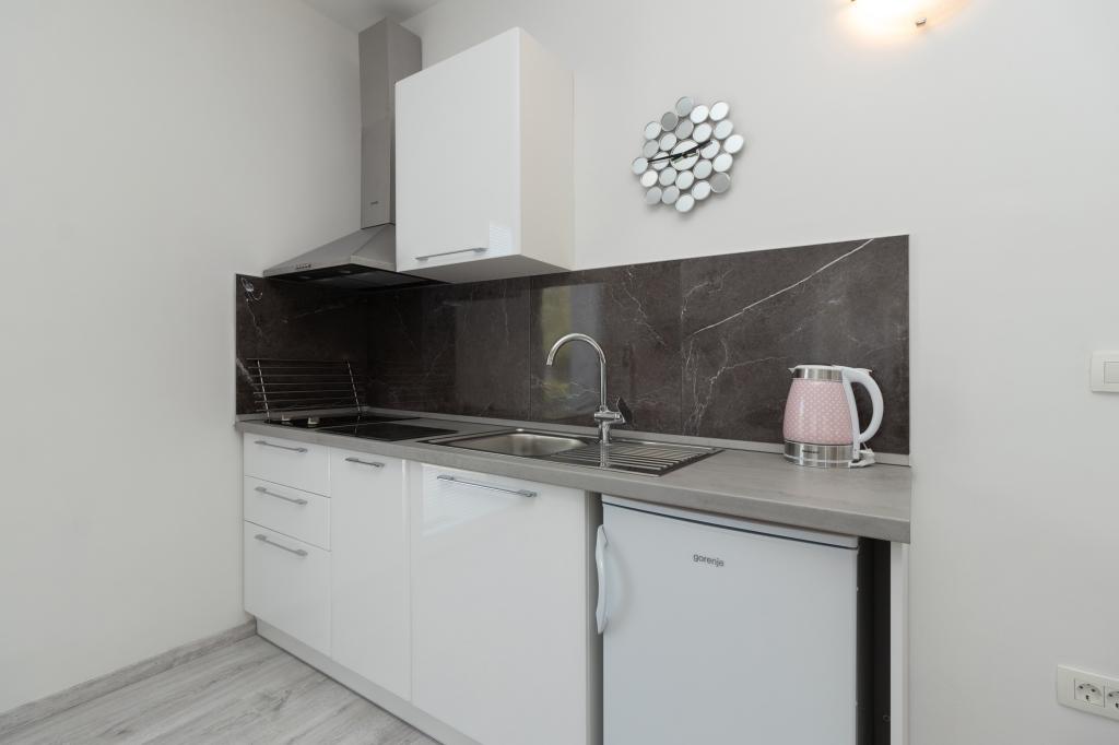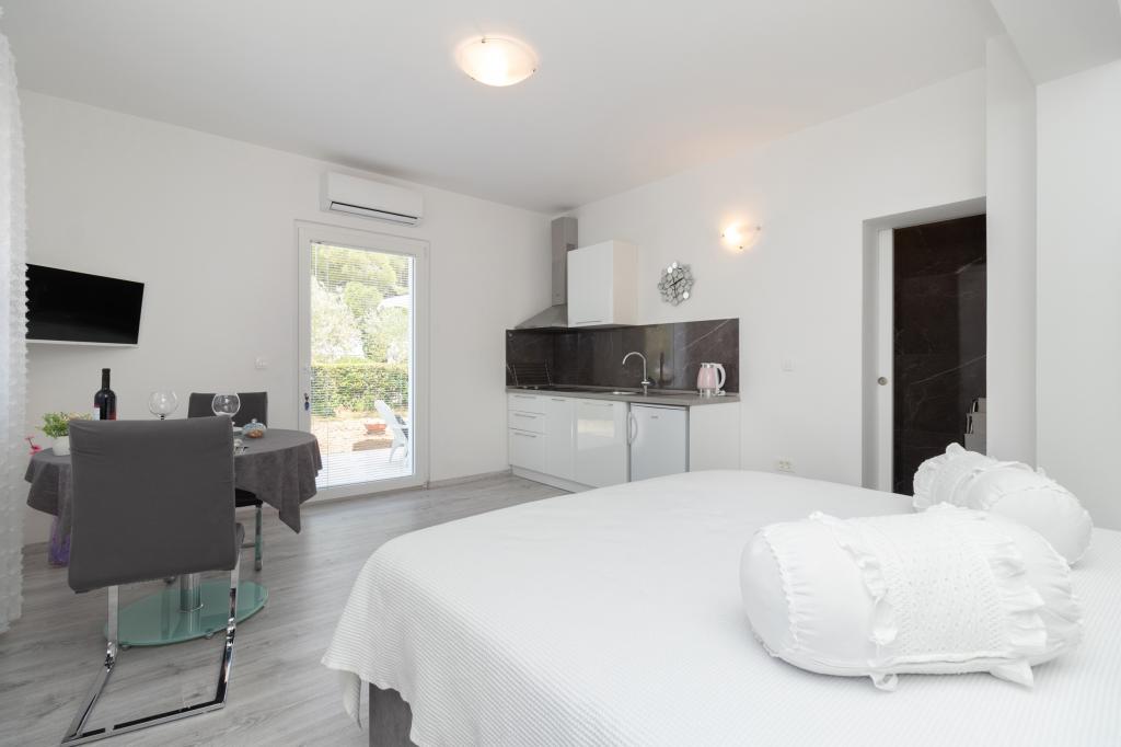 De moderne udstyrede lejligheder er beliggende i fredelige omgivelser med en anlagt have, ideel til afslapning og udendørsaktiviteter. Ejendommen tilbyder den perfekte kombination af komfort og funktionalitet, og hver lejlighed er omhyggeligt indrettet for at sikre gæsterne et behageligt ophold. Beliggenheden er yderst praktisk, togstationen ligger kun 10 minutter væk til fods, og lufthavnen ligger 15 minutters kørsel væk, hvilket giver nem ankomst og afrejse. Hvis du ankommer i bil, er der mulighed for sikker parkering på ejendommen. Alle nødvendige faciliteter såsom butikker, restauranter og caféer ligger i nærheden, mens stenstranden kun ligger 7 minutter væk til fods.