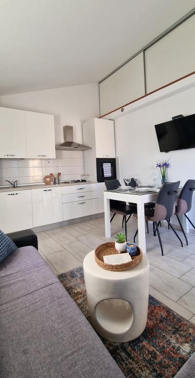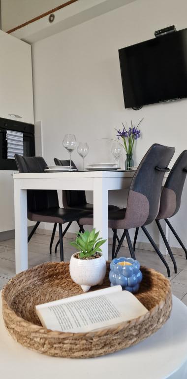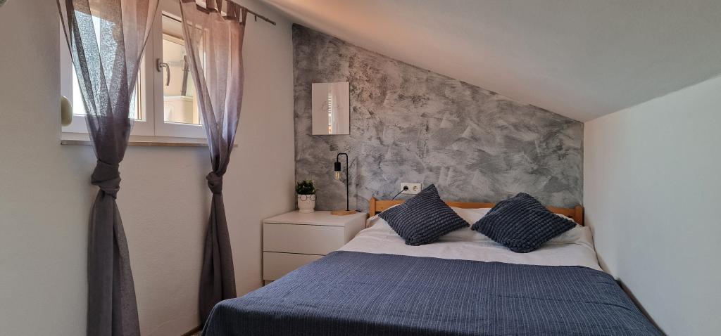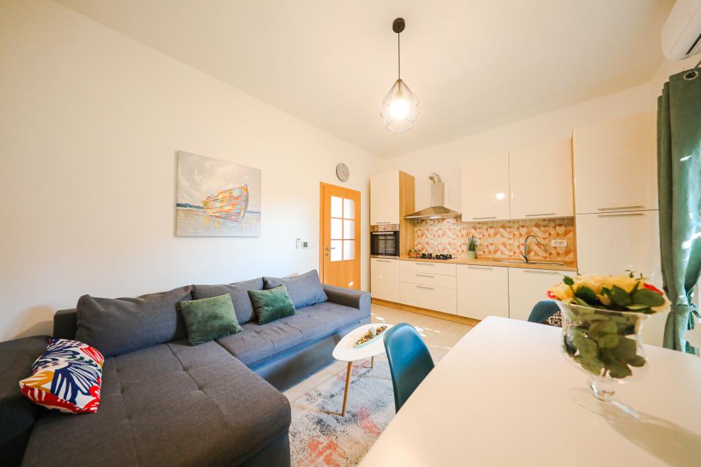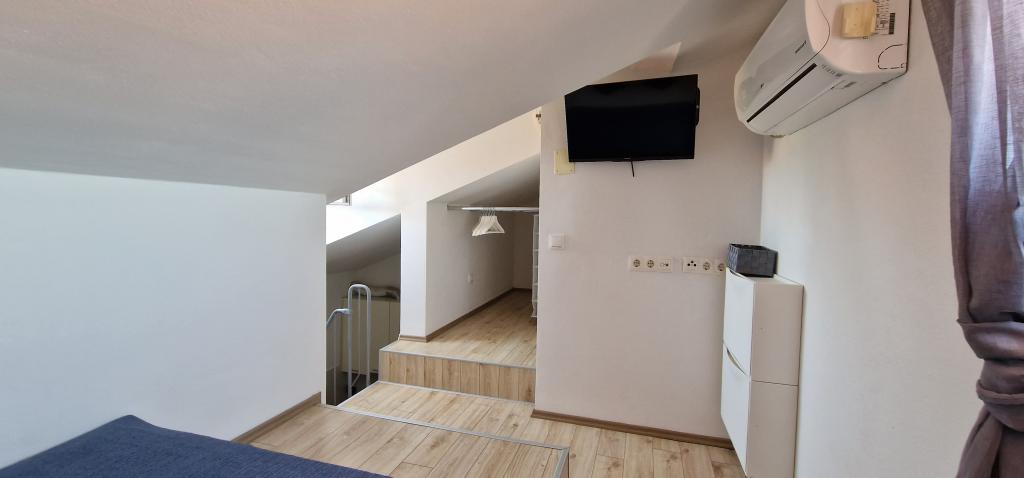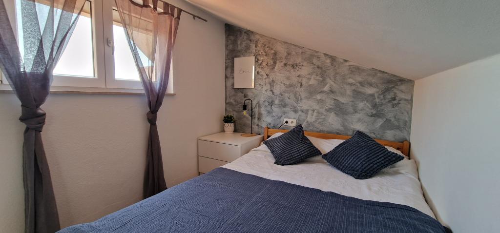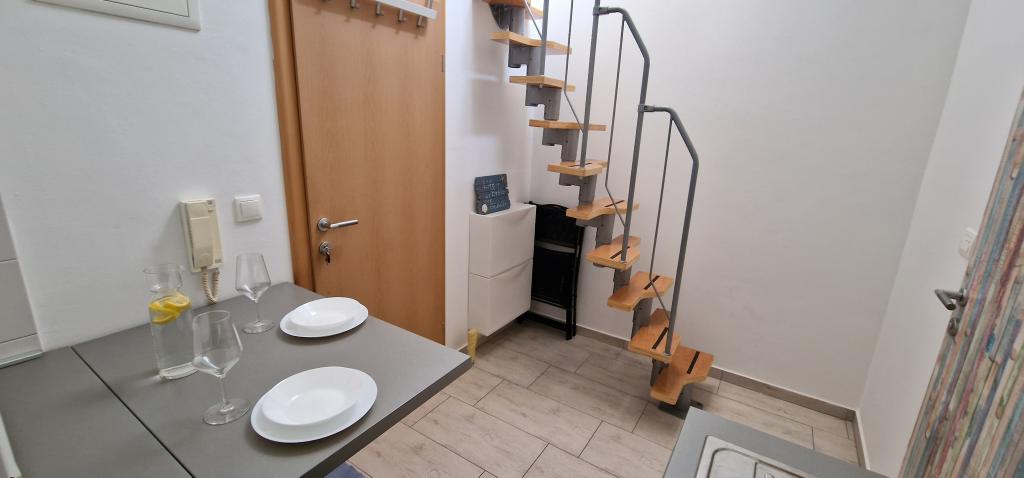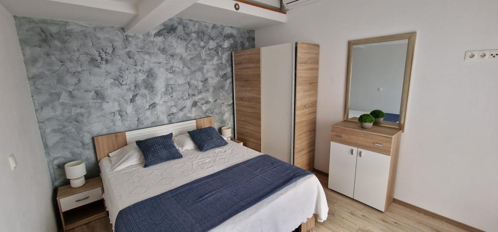 Ferielejligheder Iva er beliggende i et let forhøjet sted, i en moderne villa sekund 5 km fra den gamle bydel. Tilbuddet, ud til gratis Wi-Fi og privat parkering, i yderligere 2 lejligheder vil du finde stilfulde værelser, med air condition i hver af dem (3 Klima per person), stue / køkken indrettet med stil og LCD-tv, rummelig terrasse, hvor du kan slappe af og nyde udsigten, moderne badeværelse med bruser, osv Større lejligheder består af to soveværelser, en dobbeltseng i et og senge til en person, der strækker sig ind i en seng for 2 personer i det andet soveværelse. Sofa i stuen, hvis det er nødvendigt, blive forvandlet til en seng til 2 personer. Køkkenet er udstyret med alt det nødvendige for komfortabel hvile: køleskab, ovn, opvaskemaskine (1 suite) ... Studio er et mindre rum på 25m2, som strækker sig over 2 etager, og er tilpasset overnatning for 2 personer. Den består af 1 soveværelse med dobbeltseng på øverste etage, og køkken og badeværelse på bunden. Alle lejligheder er nyrenoverede.