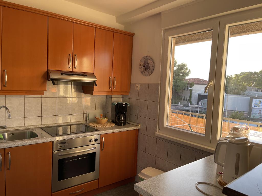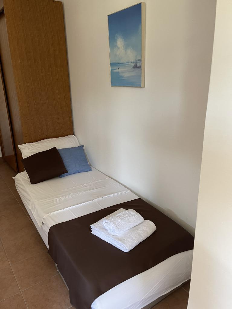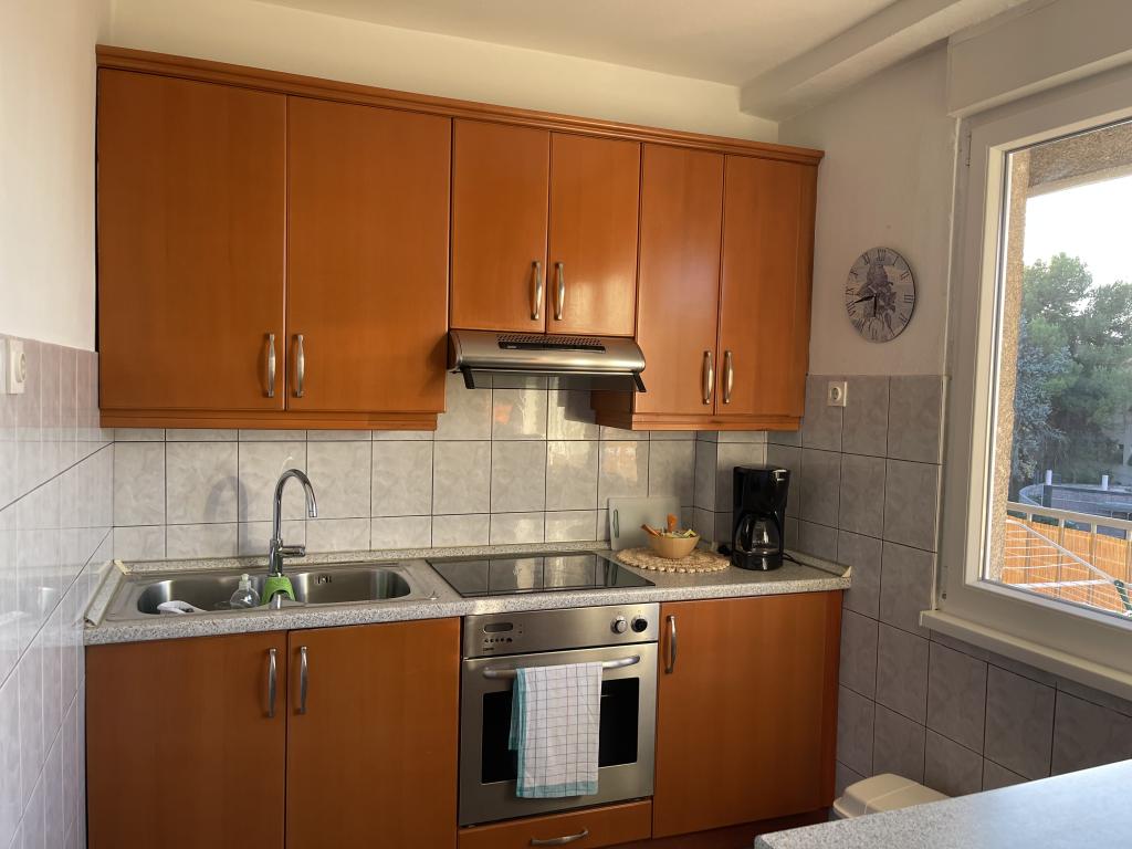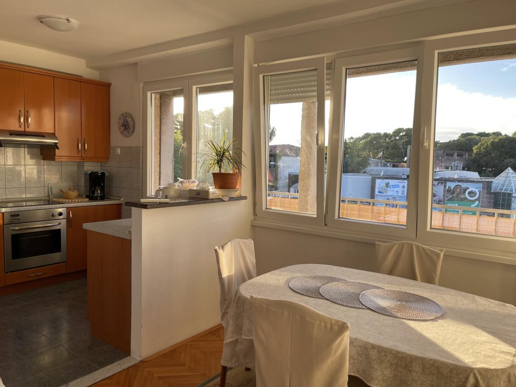 Lejligheden er beliggende nær byens centrum og stranden, havudsigt, 3. sal. Boligenhedens areal er 60m2, den består af 2 soveværelser, det ene med 2 separate senge / 90X200/, og det andet med en dobbeltseng / 160X200/. I stuen er der en sofa til den femte person. Køkken udstyret: mikroovn, kaffemaskine, kedel, ovn. Badeværelset har bruseniche og vaskemaskine, stuen og det ene soveværelse har udgang til terrassen.Lejeprisen inkluderer sengelinned, håndklæder, WI-FI, turistskat