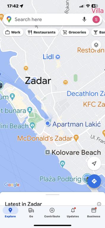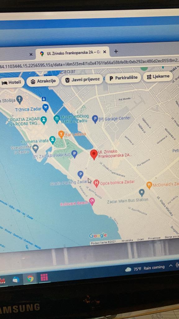 Med ankomsten i Zadar havde vi hjælp til at parkere bilen gratis parkering. Lejligheden vi kunne lide, fordi det smagfuldt var møbleret. Imponeret os med sin udsigt fra balkonen, hvor sikker fornøjelse at sidde og drikke kaffe. Da vi var i april for noget vi var koldt. Køkkenet har alt selv de små ting, du har brug for dem. Alt er pænt og rent og værelset var tilfredsstillende. Shoppingcentret er nær. Og alle de andre destinationer for sightseeing, sådanne seværdigheder er ikke langt væk, og du kan besøge dem til fods.