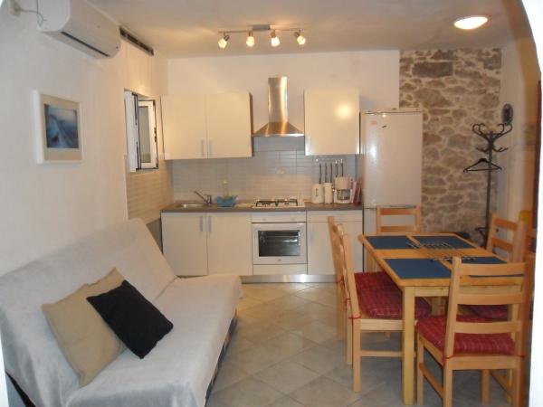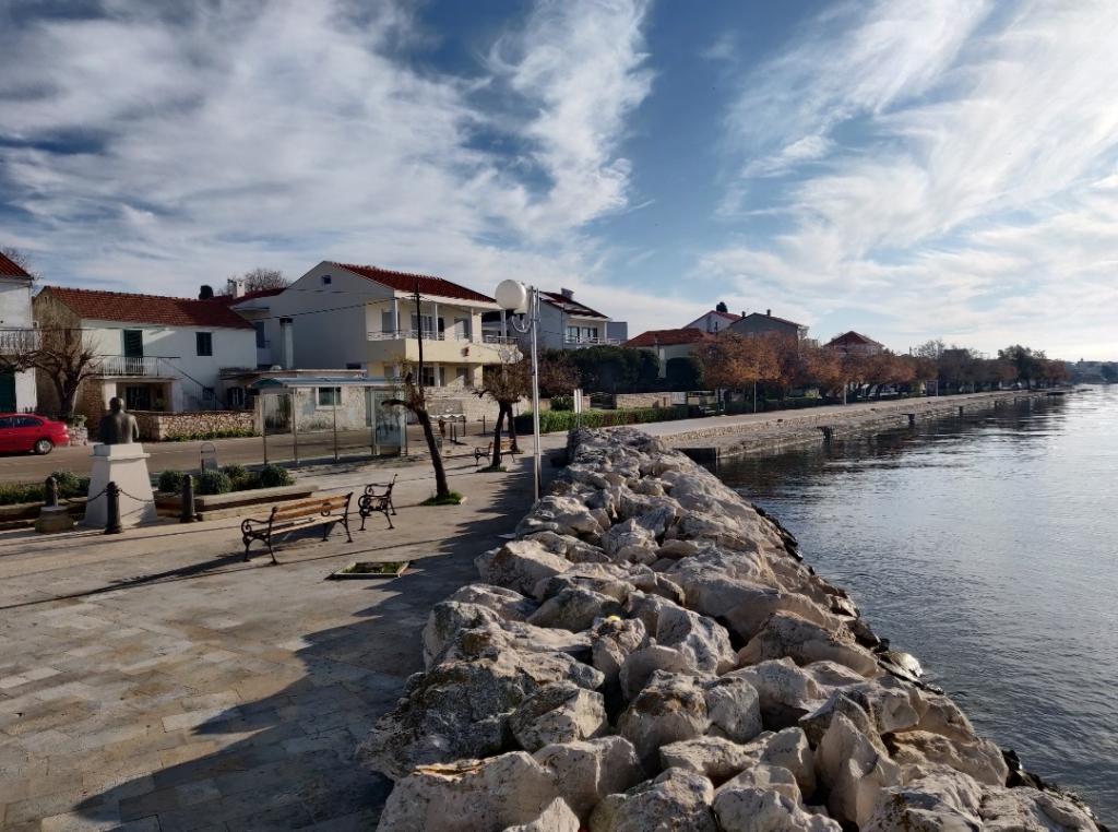 Fuldt og moderne udstyret lejlighed i et roligt område af DIKLA. LIGGER LIGE VED HAVET - FØRSTE RÆKKE. med en smuk udsigt over havet. Bygningen ligger 10 m fra centrum og 10 m fra strand og hav. Nordvest for byen Zadar, 6 km fra den gamle bykerne og lige ved siden af Puntamika-turistområdet, ligger turistlandsbyen Diklo. Et eliteferiested nær det 3000 år gamle Zadar, kendt for sine villaer og private huse og al den nødvendige infrastruktur til en behagelig ferie. I Diklo finder du smukke og lettilgængelige svømmebassiner, dem anbefaler vi til familier med børn. Stenstrande er veludstyrede med yderligere faciliteter til underholdning og rekreation, der er sportsbaner i selve landsbyen, du kan vælge mellem land- og vandsport (tennis, basketball, fodbold, sejlads, fitnesscenter osv.). Hvis du leder efter underholdning, er der mange caféer og restauranter. Diklo er en landsby beliggende i hjertet af Dalmatien, nær byen Zadar. Det er et ideelt sted for en rolig ferie uden sommerskarer, især for familier med små børn