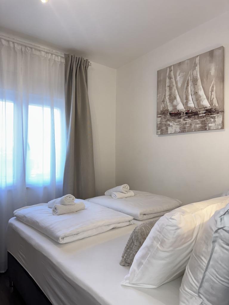 Vi tilbragte en meget dejlig uge i 4+2 lejligheden. Lejligheden er meget flot, moderne, ren, stor og har alt hvad du behøver på ferien. En terrasse med havepavillon, opholdsområde og figentræ i gården er et højdepunkt. Promenaden ind til byen ligger to minutters gang fra huset. Parkering er foran huset og er fantastisk. Samir er en meget flink udlejer og er der altid, hvis du har spørgsmål. Vi vil gerne komme tilbage.