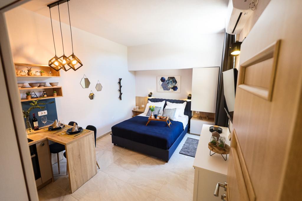 Lejlighederne er super pæne, alt var rigtigt, værterne er en af de bedste jeg har mødt. Boss Semir forsynede os med friske figner på daglig basis. Placeringen er fantastisk, og prisen er acceptabel. Og havet er meget renere end på den største bystrand.