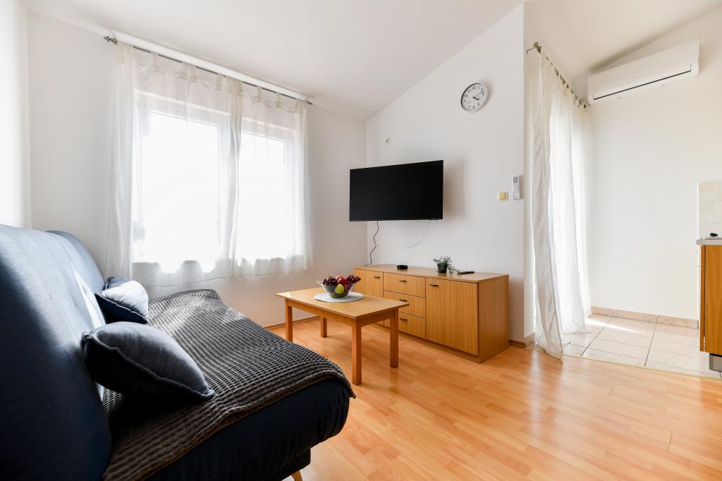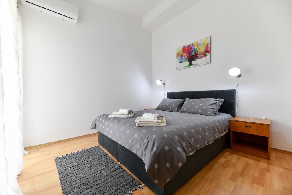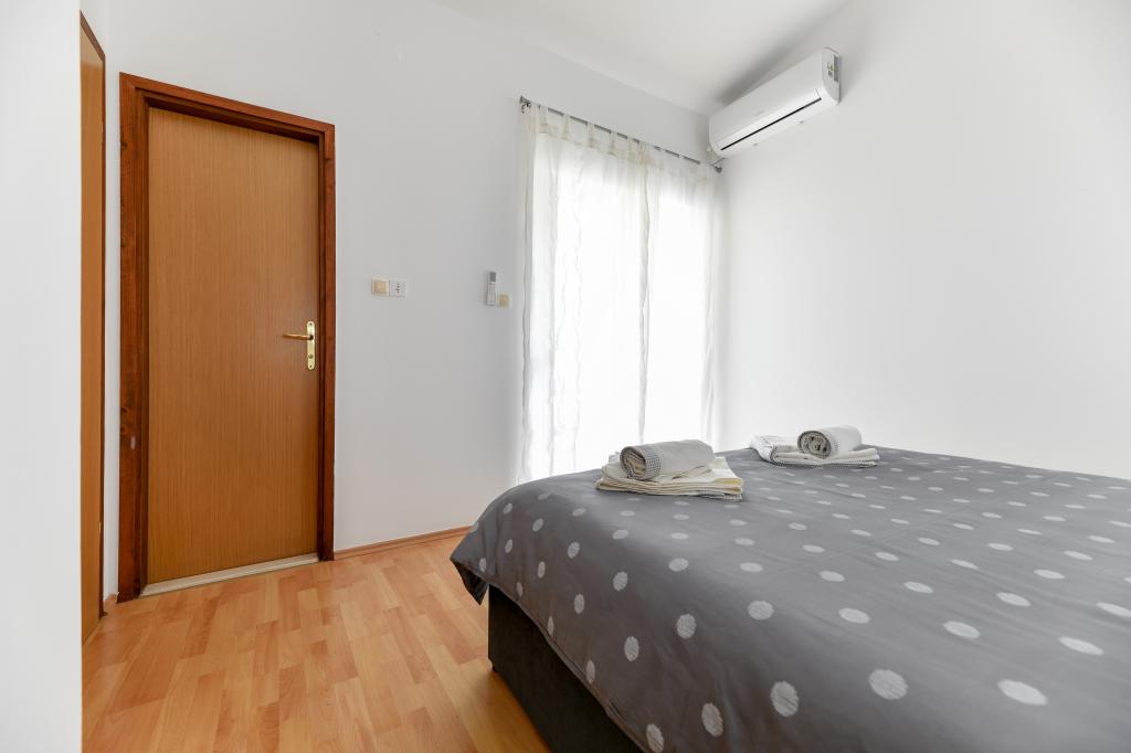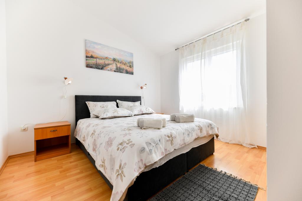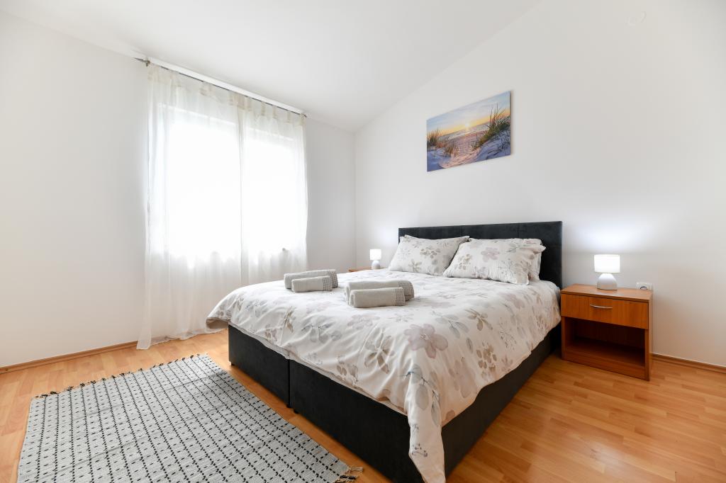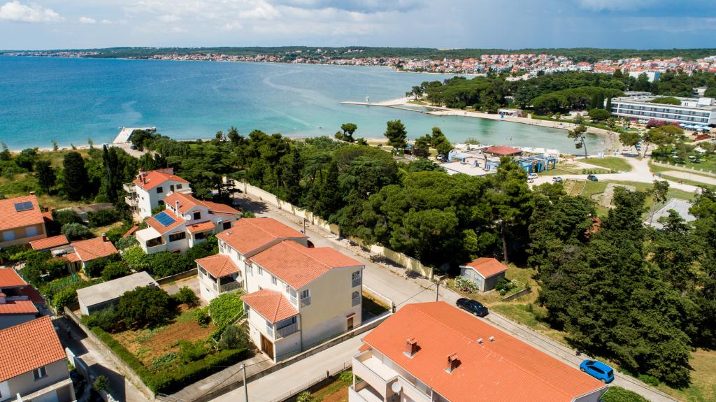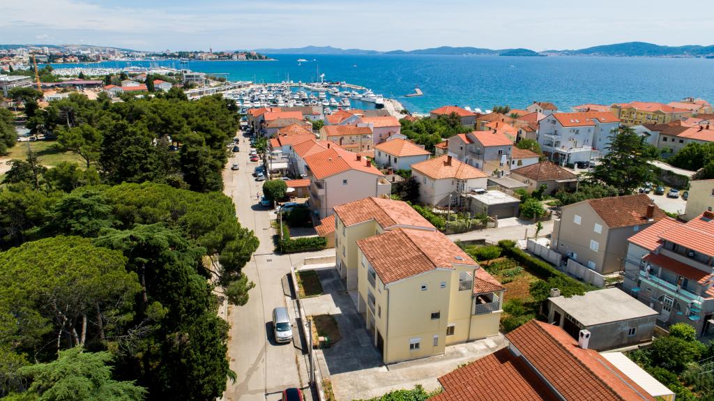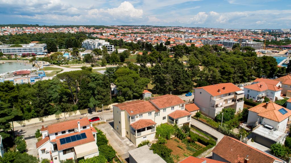 En ideel beliggenhed for en fredelig familieferie. Sunset Puntamika Apartments har en fremragende beliggenhed i Zadar, kun 100 meter fra den smukke sandstrand Borik, hvilket tilbyder sine gæster muligheden for en fredelig familieferie. Ejendommen har 6 lejligheder. Fire lejligheder har plads til 3 personer, en til 4 personer og en til 6 personer. Lejlighederne har et fuldt funktionelt køkken (køleskab, kogeplader, service...), LCD-tv, aircondition, badeværelse, store dobbeltsenge osv. Der er parkering til rådighed for hver lejlighed samt WI-FI internet. Ejendommen er beliggende i et roligt område uden for mange mennesker. Alle nødvendige faciliteter er tilgængelige til fods. Zadars centrum ligger 3 kilometer væk, og Zadar Lufthavn ligger kun 15 kilometer væk. Busstoppestedet ligger 200 meter fra lejligheden.