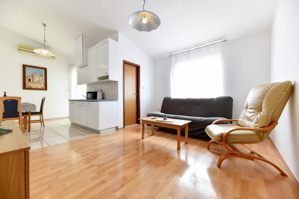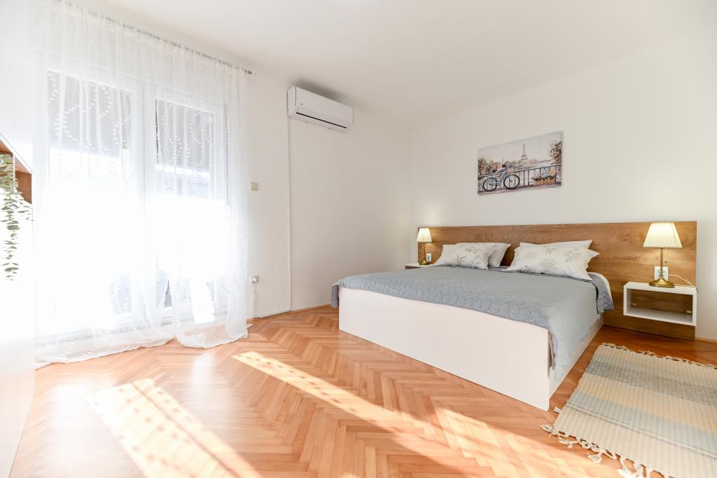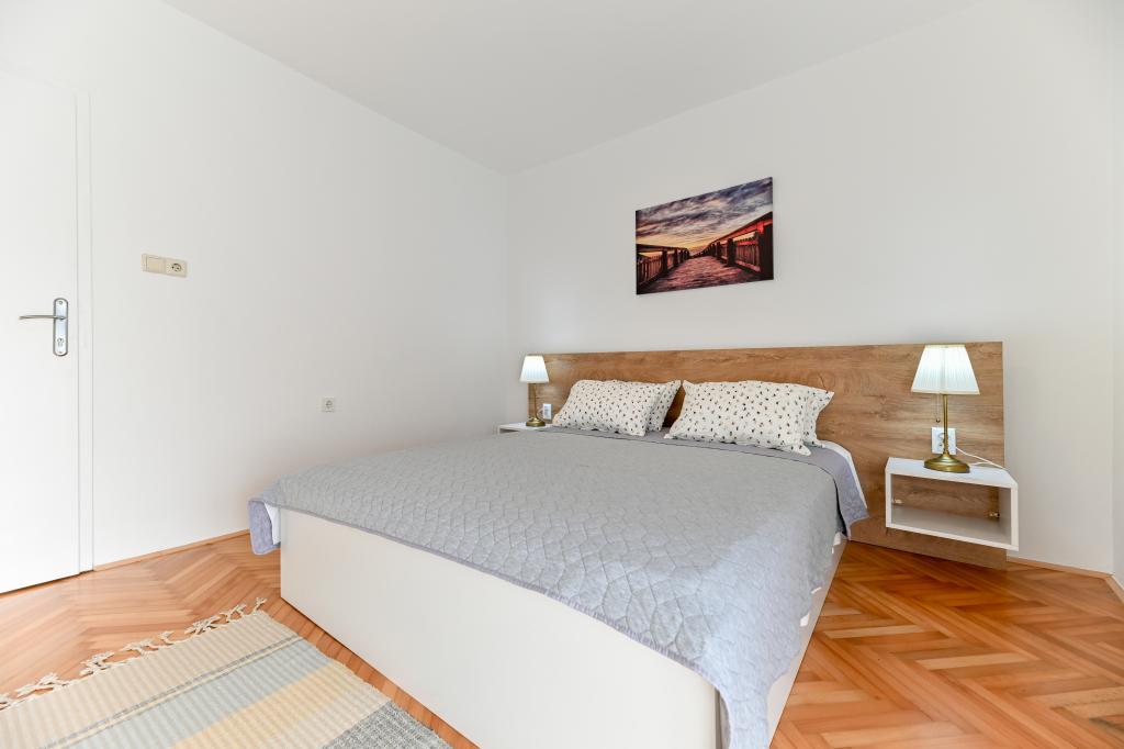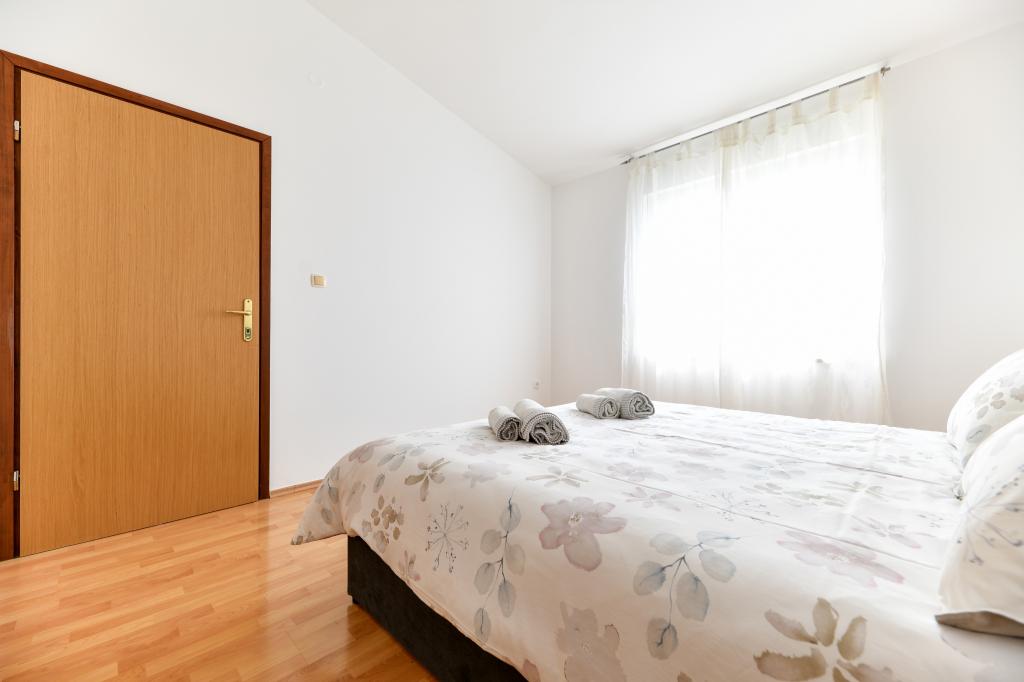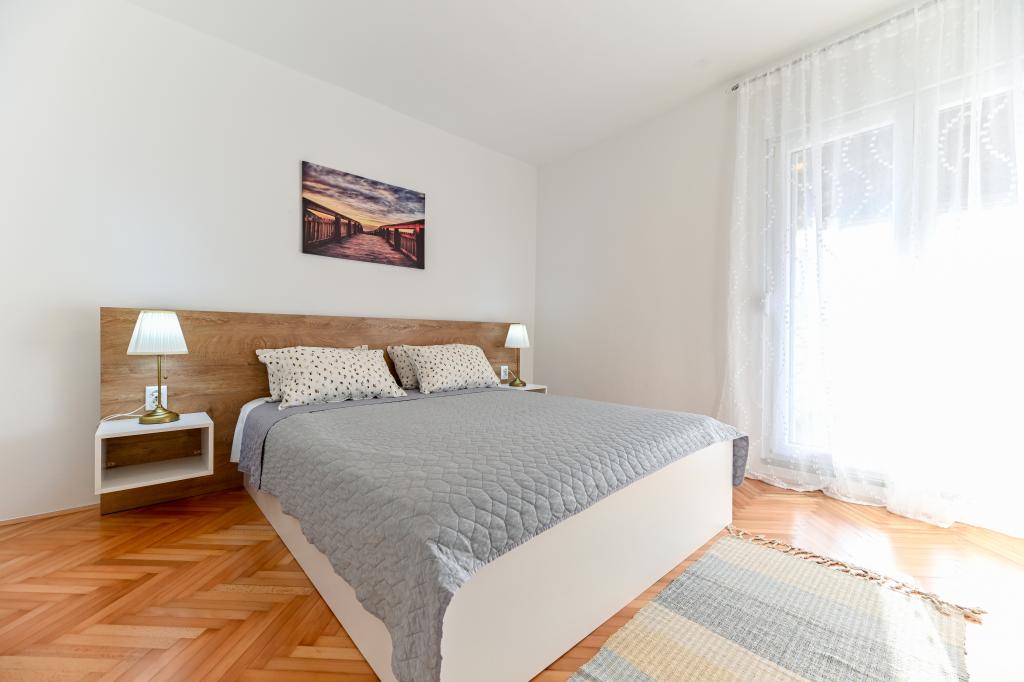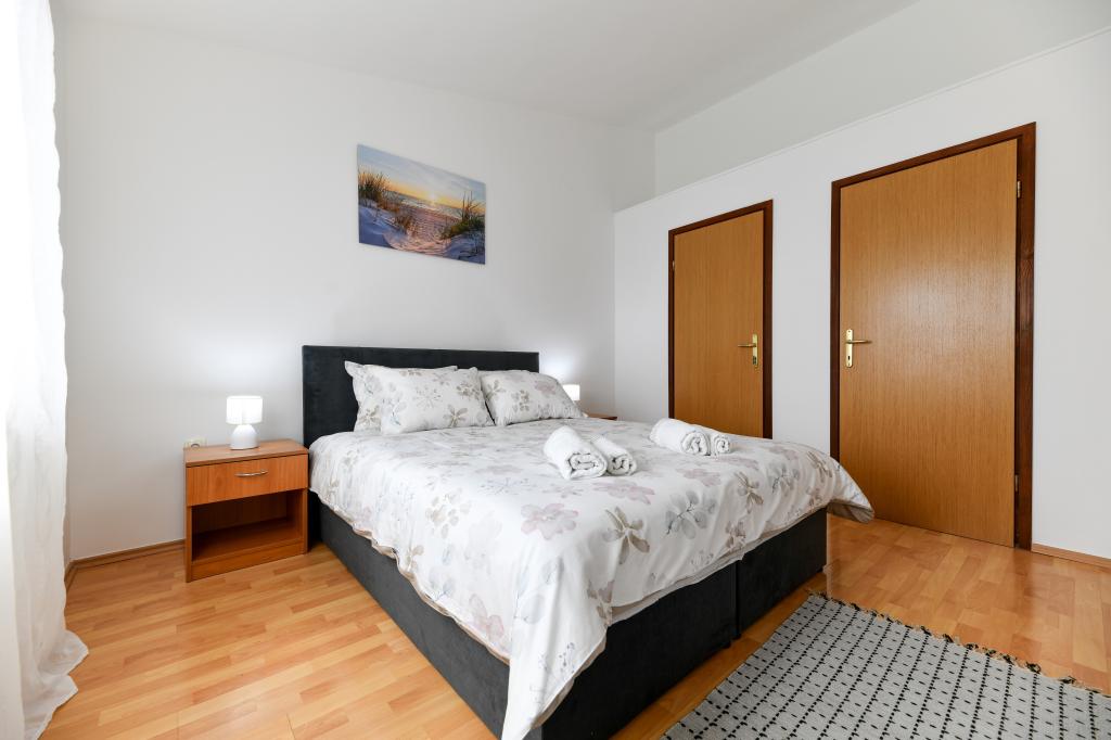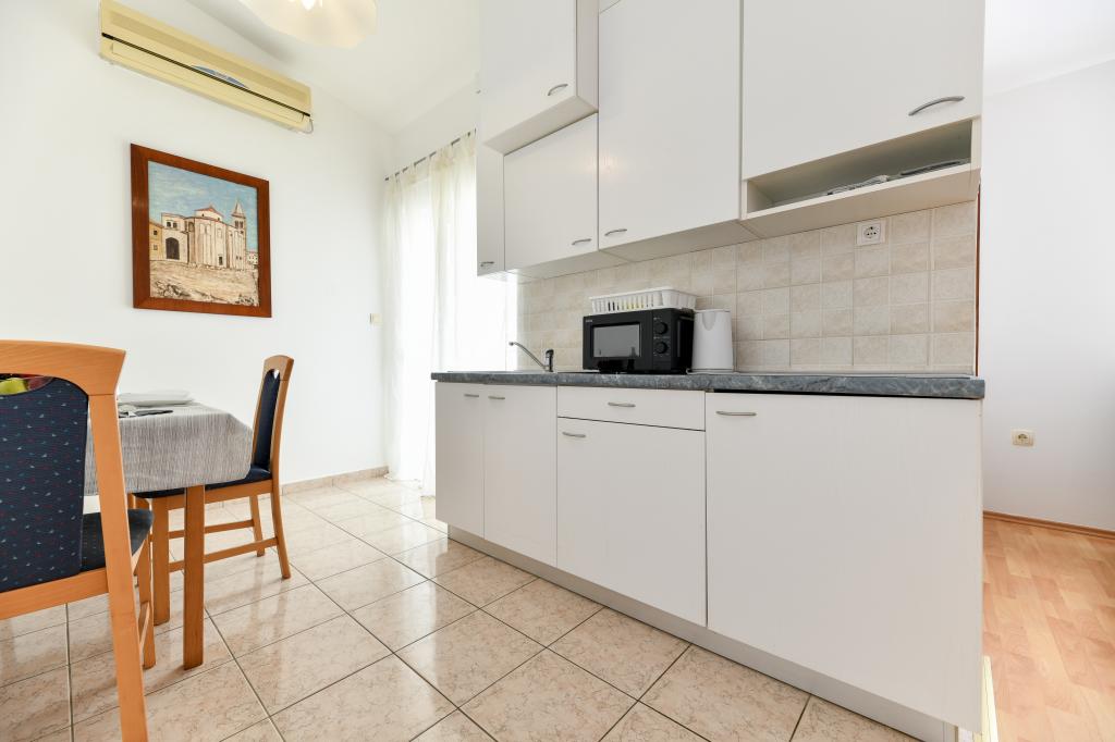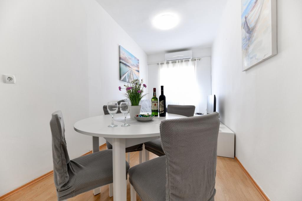 En ideel beliggenhed for en fredelig familieferie. Sunset Puntamika Apartments har en fremragende beliggenhed i Zadar, kun 100 meter fra den smukke sandstrand Borik, hvilket tilbyder sine gæster muligheden for en fredelig familieferie. Ejendommen har 6 lejligheder. Fire lejligheder har plads til 3 personer, en til 4 personer og en til 6 personer. Lejlighederne har et fuldt funktionelt køkken (køleskab, kogeplader, service...), LCD-tv, aircondition, badeværelse, store dobbeltsenge osv. Der er parkering til rådighed for hver lejlighed samt WI-FI internet. Ejendommen er beliggende i et roligt område uden for mange mennesker. Alle nødvendige faciliteter er tilgængelige til fods. Zadars centrum ligger 3 kilometer væk, og Zadar Lufthavn ligger kun 15 kilometer væk. Busstoppestedet ligger 200 meter fra lejligheden.