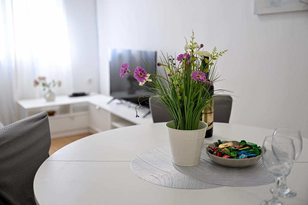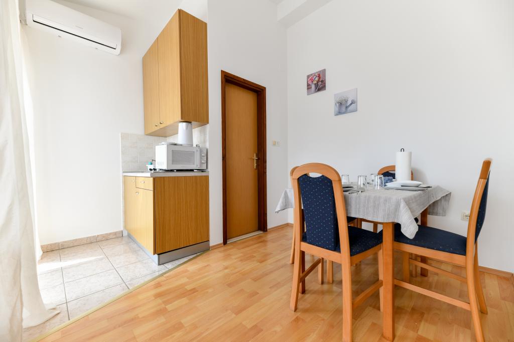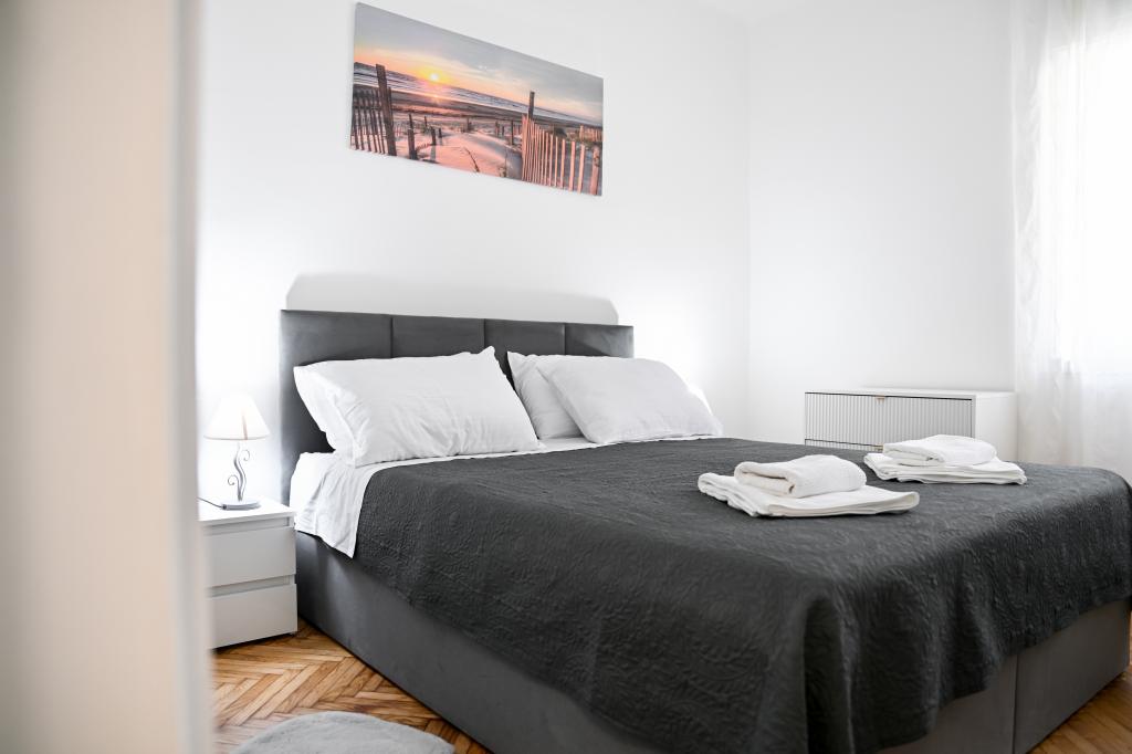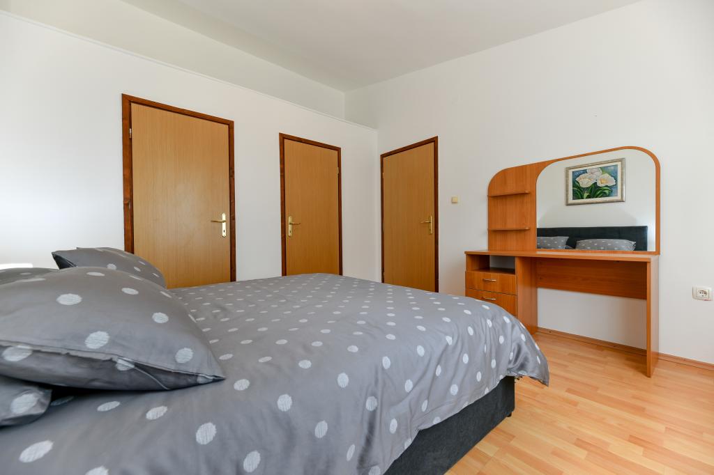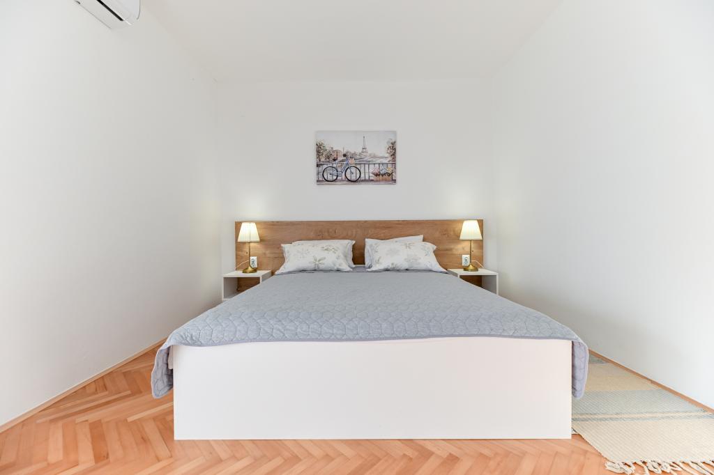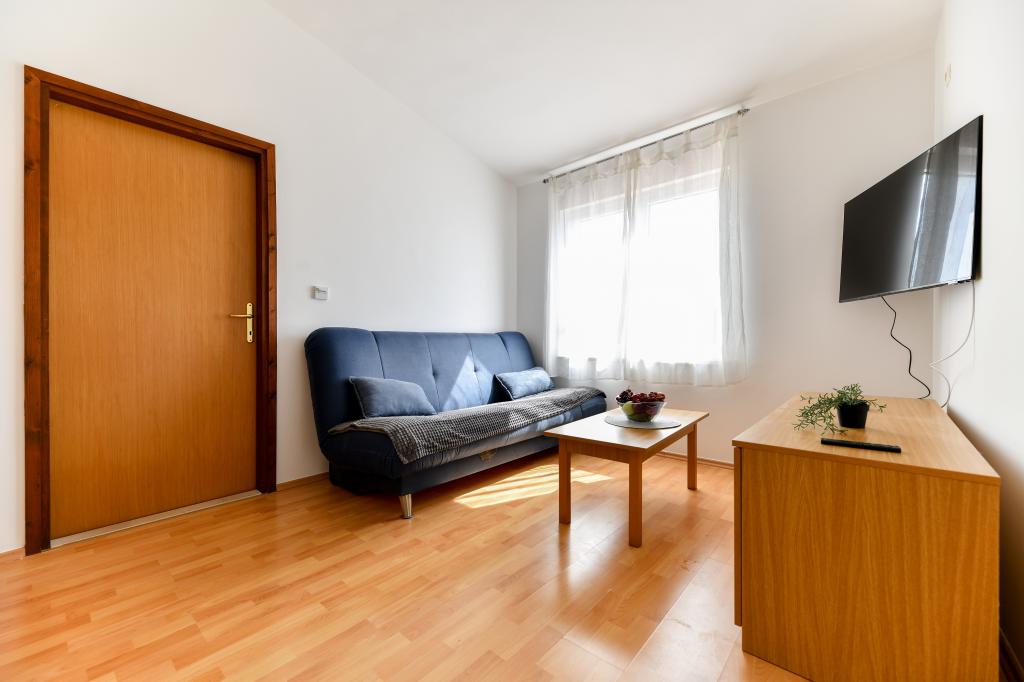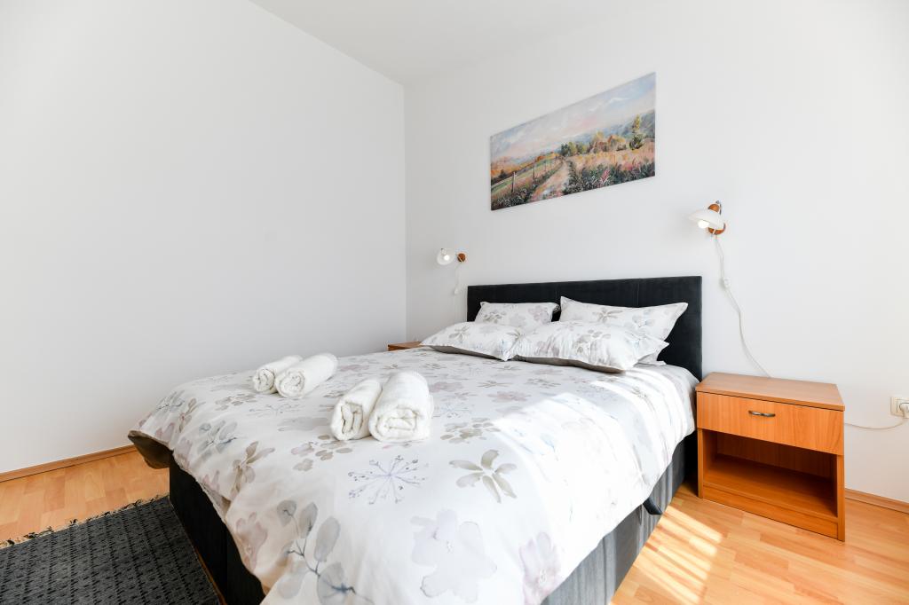En ideel beliggenhed for en fredelig familieferie. Sunset Puntamika Apartments har en fremragende beliggenhed i Zadar, kun 100 meter fra den smukke sandstrand Borik, hvilket tilbyder sine gæster muligheden for en fredelig familieferie. Ejendommen har 6 lejligheder. Fire lejligheder har plads til 3 personer, en til 4 personer og en til 6 personer. Lejlighederne har et fuldt funktionelt køkken (køleskab, kogeplader, service...), LCD-tv, aircondition, badeværelse, store dobbeltsenge osv. Der er parkering til rådighed for hver lejlighed samt WI-FI internet. Ejendommen er beliggende i et roligt område uden for mange mennesker. Alle nødvendige faciliteter er tilgængelige til fods. Zadars centrum ligger 3 kilometer væk, og Zadar Lufthavn ligger kun 15 kilometer væk. Busstoppestedet ligger 200 meter fra lejligheden.