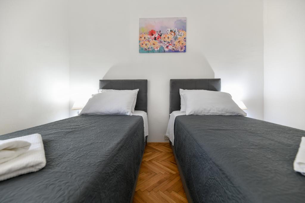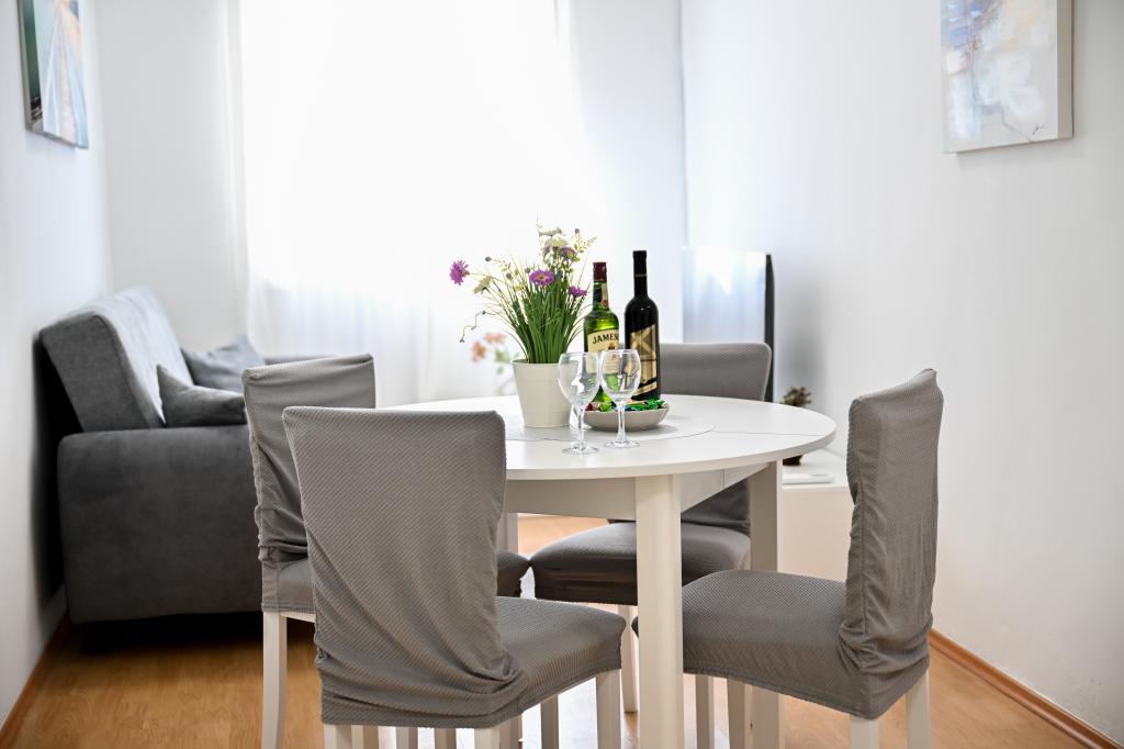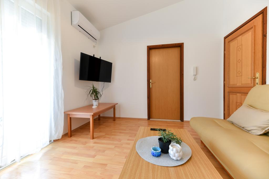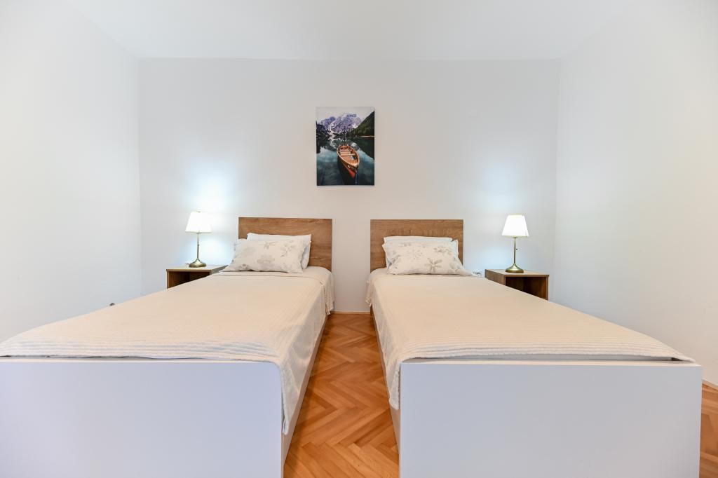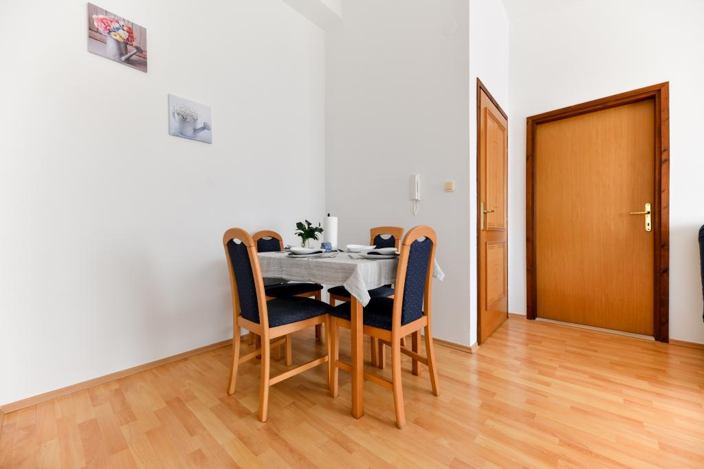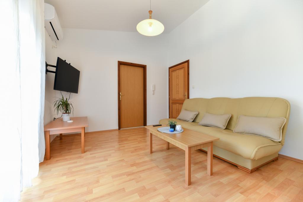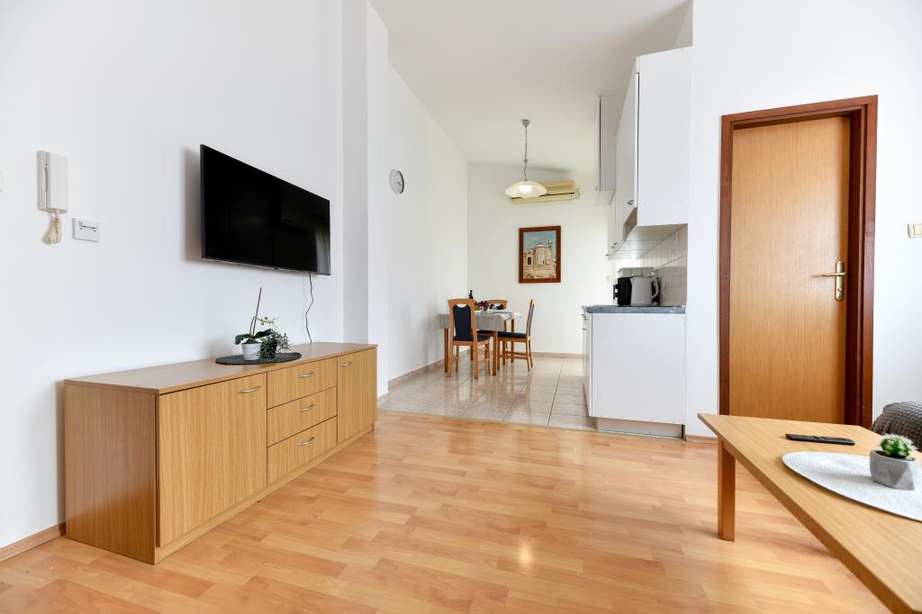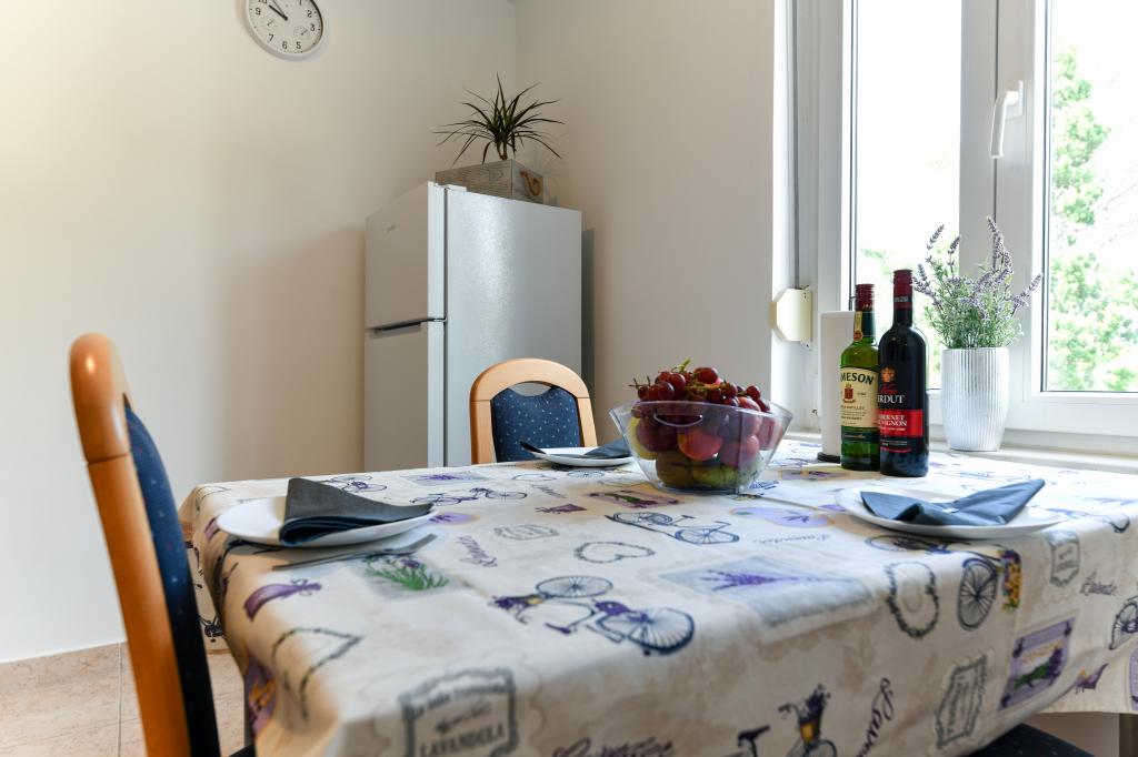 En ideel beliggenhed for en fredelig familieferie. Sunset Puntamika Apartments har en fremragende beliggenhed i Zadar, kun 100 meter fra den smukke sandstrand Borik, hvilket tilbyder sine gæster muligheden for en fredelig familieferie. Ejendommen har 6 lejligheder. Fire lejligheder har plads til 3 personer, en til 4 personer og en til 6 personer. Lejlighederne har et fuldt funktionelt køkken (køleskab, kogeplader, service...), LCD-tv, aircondition, badeværelse, store dobbeltsenge osv. Der er parkering til rådighed for hver lejlighed samt WI-FI internet. Ejendommen er beliggende i et roligt område uden for mange mennesker. Alle nødvendige faciliteter er tilgængelige til fods. Zadars centrum ligger 3 kilometer væk, og Zadar Lufthavn ligger kun 15 kilometer væk. Busstoppestedet ligger 200 meter fra lejligheden.