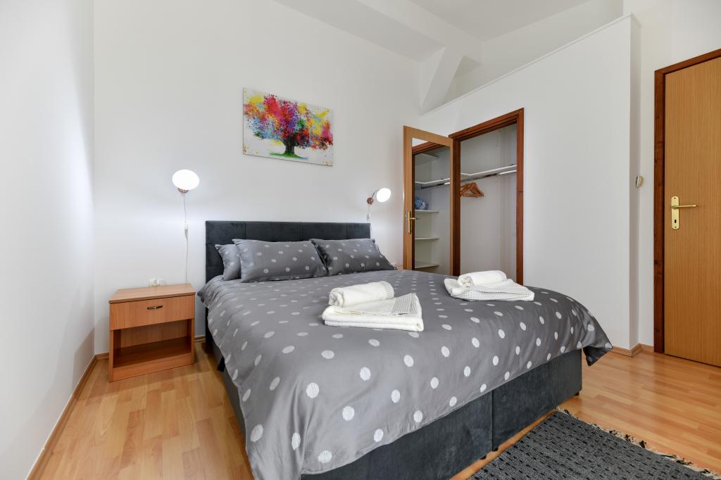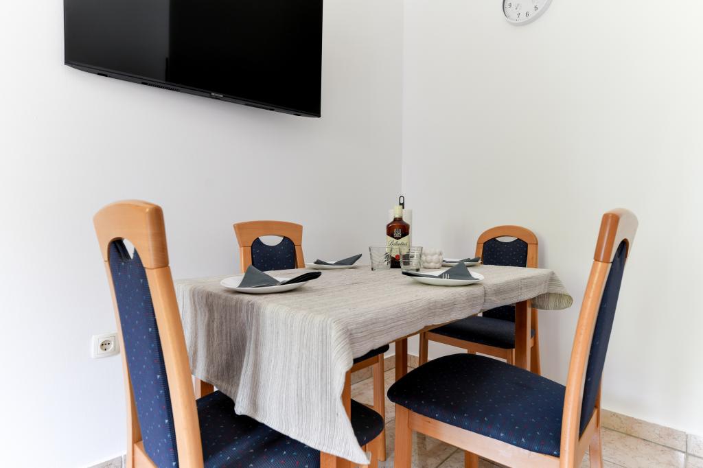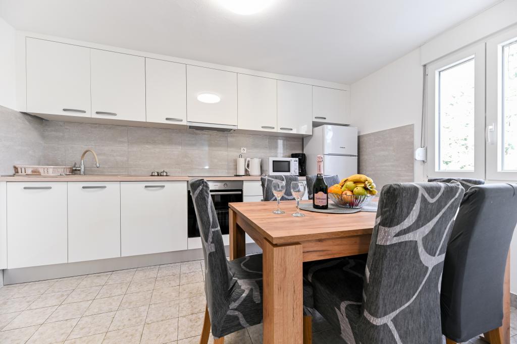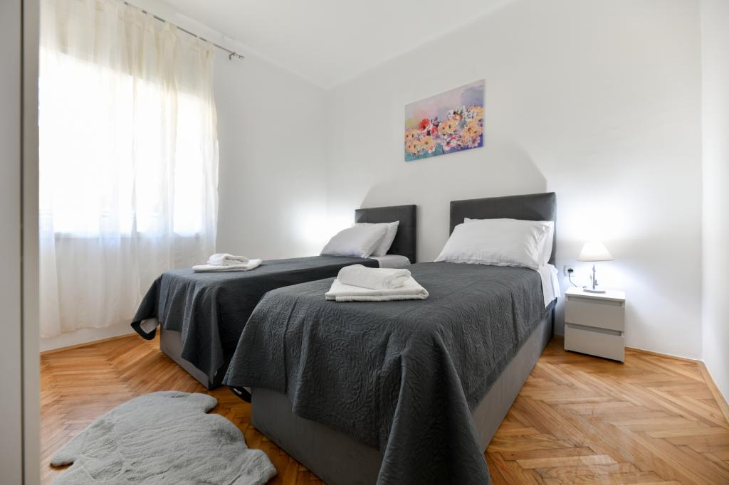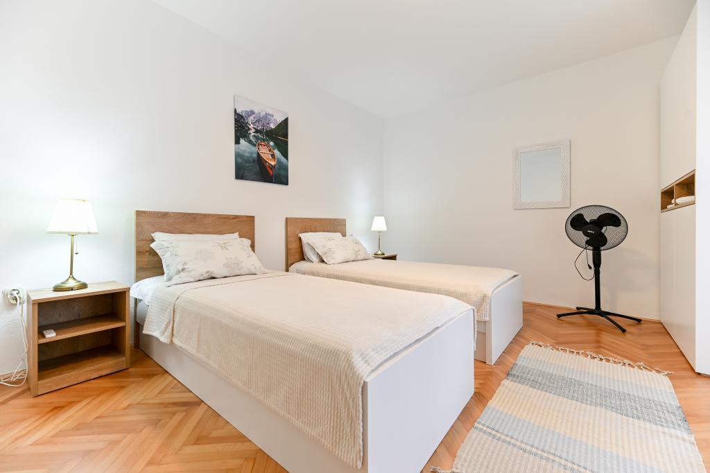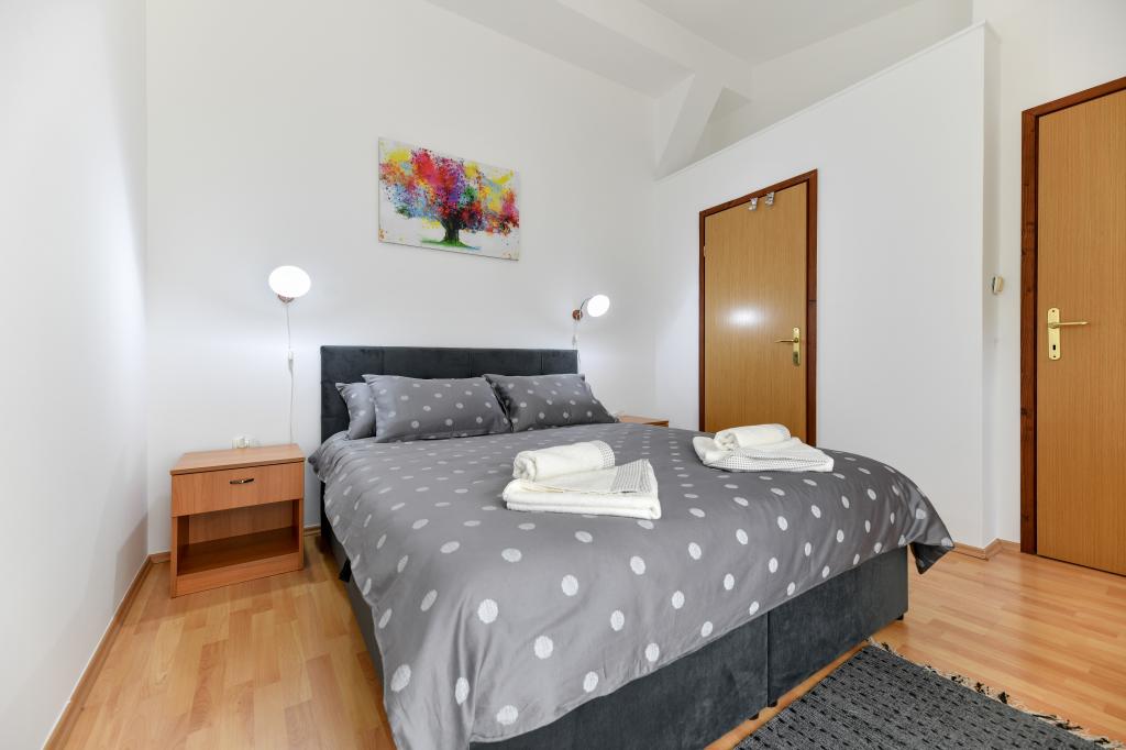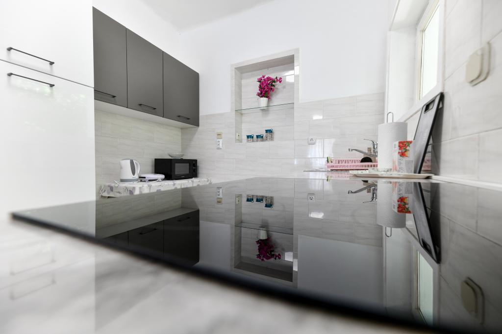En ideel beliggenhed for en fredelig familieferie. Sunset Puntamika Apartments har en fremragende beliggenhed i Zadar, kun 100 meter fra den smukke sandstrand Borik, hvilket tilbyder sine gæster muligheden for en fredelig familieferie. Ejendommen har 6 lejligheder. Fire lejligheder har plads til 3 personer, en til 4 personer og en til 6 personer. Lejlighederne har et fuldt funktionelt køkken (køleskab, kogeplader, service...), LCD-tv, aircondition, badeværelse, store dobbeltsenge osv. Der er parkering til rådighed for hver lejlighed samt WI-FI internet. Ejendommen er beliggende i et roligt område uden for mange mennesker. Alle nødvendige faciliteter er tilgængelige til fods. Zadars centrum ligger 3 kilometer væk, og Zadar Lufthavn ligger kun 15 kilometer væk. Busstoppestedet ligger 200 meter fra lejligheden.