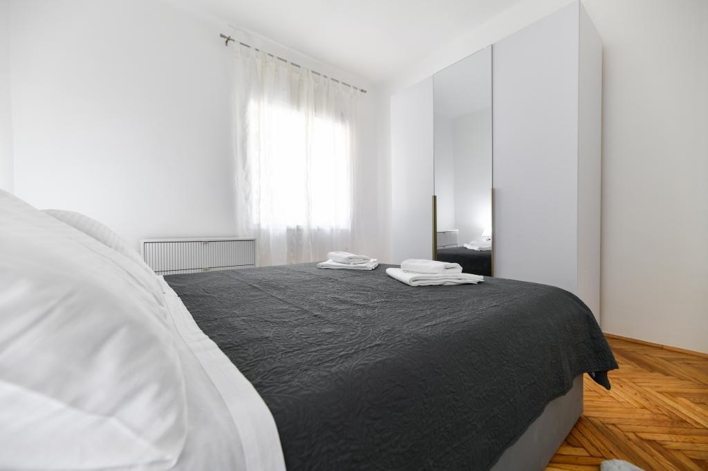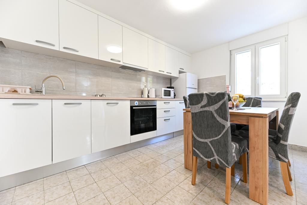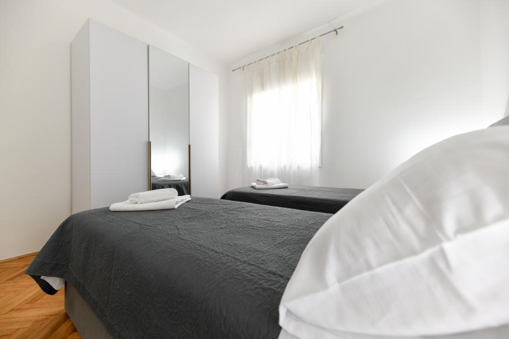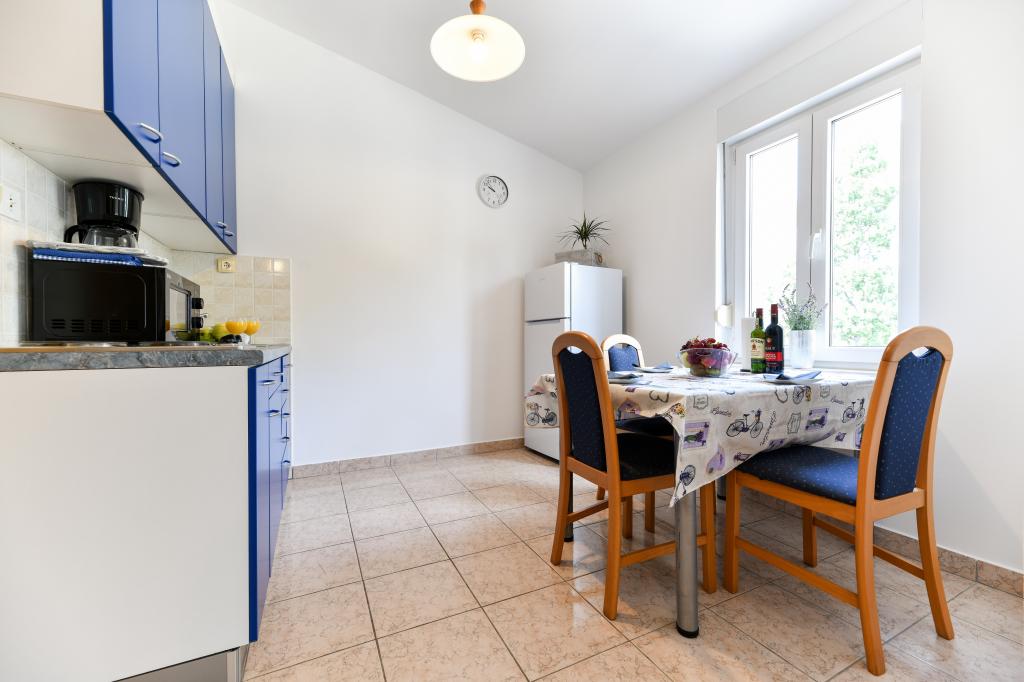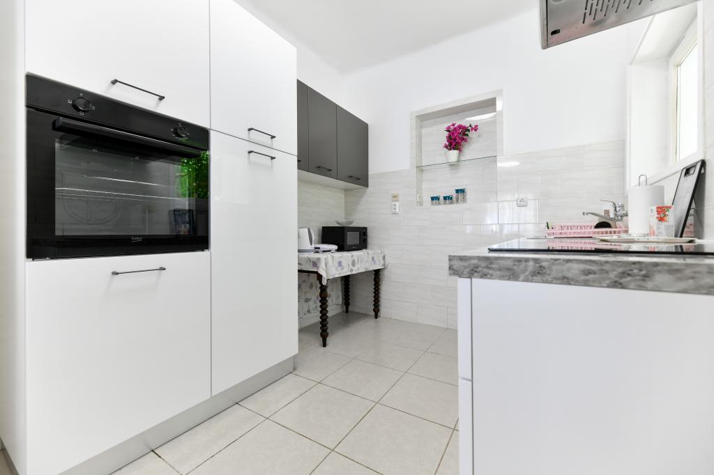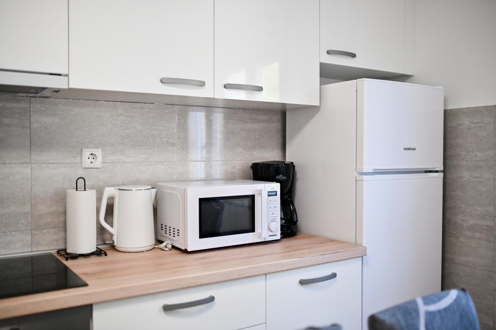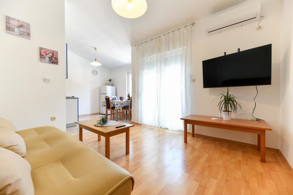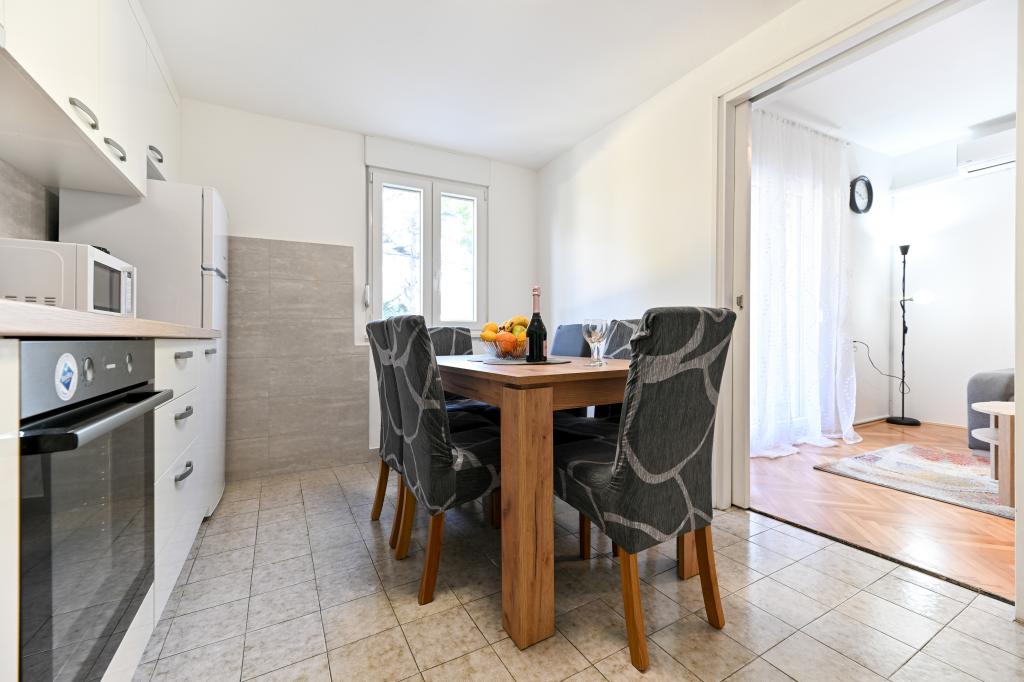 En ideel beliggenhed for en fredelig familieferie. Sunset Puntamika Apartments har en fremragende beliggenhed i Zadar, kun 100 meter fra den smukke sandstrand Borik, hvilket tilbyder sine gæster muligheden for en fredelig familieferie. Ejendommen har 6 lejligheder. Fire lejligheder har plads til 3 personer, en til 4 personer og en til 6 personer. Lejlighederne har et fuldt funktionelt køkken (køleskab, kogeplader, service...), LCD-tv, aircondition, badeværelse, store dobbeltsenge osv. Der er parkering til rådighed for hver lejlighed samt WI-FI internet. Ejendommen er beliggende i et roligt område uden for mange mennesker. Alle nødvendige faciliteter er tilgængelige til fods. Zadars centrum ligger 3 kilometer væk, og Zadar Lufthavn ligger kun 15 kilometer væk. Busstoppestedet ligger 200 meter fra lejligheden.