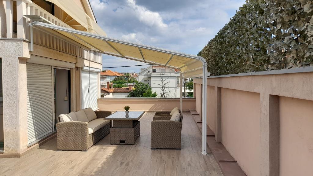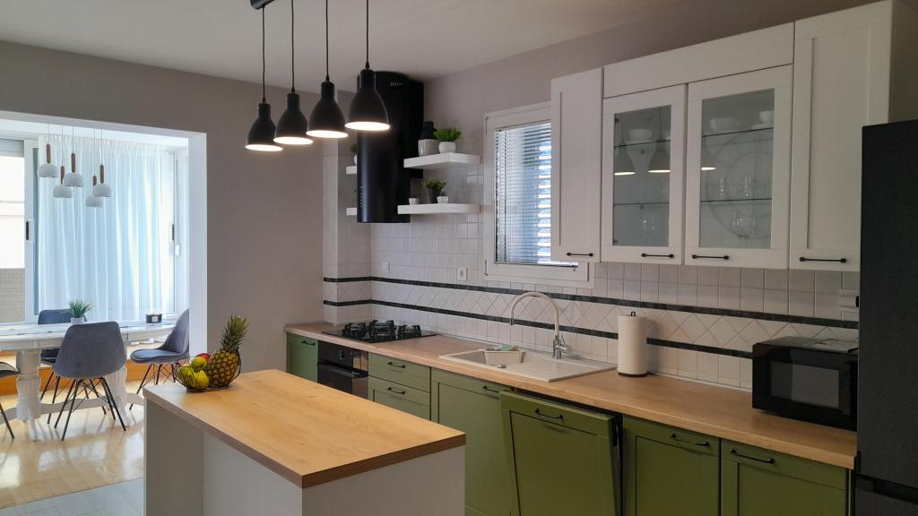 Velkommen til Z-Home Apartments! Vi tilbyder dig to uafhængige lejligheder med et areal på 85m2 og 90m2 på første og anden sal, et perfekt valg for to familier eller en gruppe, der rejser sammen og ønsker at nyde Zadar, samtidig med at de bevarer privatliv og komfort. Huset består af to uafhængige lejligheder: en lejlighed med en rummelig terrasse på første sal A4+1 (id 54053) og en lejlighed med franske altaner på anden sal A4 (id 54054). Stueetagen har en separat indgang og bruges af værten. Lejlighederne har et fuldt udstyret køkken, stue, to soveværelser og et badeværelse, og lejlighed A4 har endnu et toilet/vaskerum. Lejligheden med terrasse tilbyder et stort udendørsområde og mulighed for en ekstra seng til en femte person, mens den øverste lejlighed med franske altaner er lys og luftig. Gæsterne har gratis adgang til aircondition, gratis Wi-Fi og gratis parkering i bygningen. Indkvarteringen ligger i et roligt boligområde, tæt på strande, butikker og restauranter, og Zadars historiske centrum ligger 2,5 km væk.