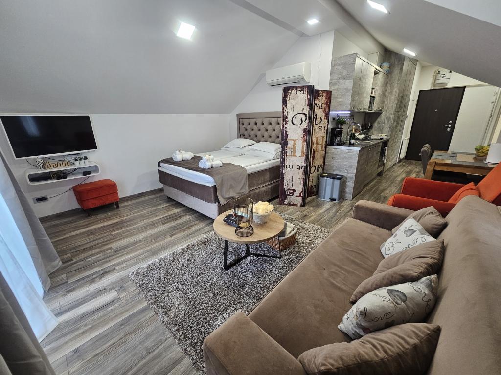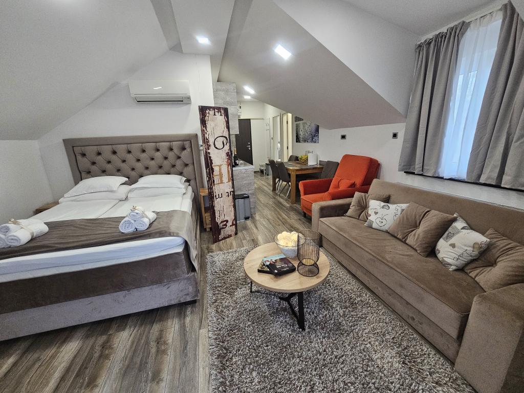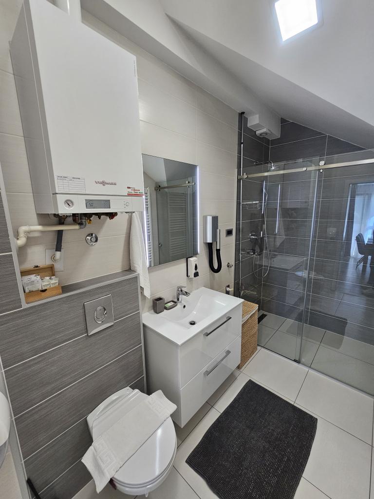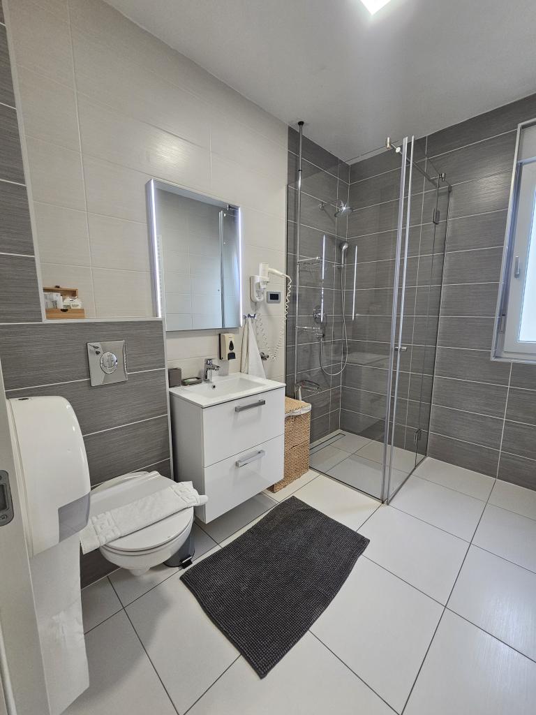 Villa Agram ligger i en stille gade (adresse: Poljanička 2a) i det gamle Trešnjevka-kvarter i Zagreb. Anlægget er helt nybygget og åbnet i 2018. Vores gæster tilbydes gratis parkering i bygningen og foran den. Villa Agram indeholder 5 luksuriøst indrettede lejligheder. Den nærmeste butik ligger 300 m fra bygningen, mens restauranter og caféer er omkring 500 m væk. Ljubljanica-rundkørslen ligger omkring 800 m fra Villa Agram, så gæsterne kan tage til centrum eller en anden del af Zagreb med sporvogn eller bus. Sporvogn nr. 12, som kører direkte til Trg ban J. Jelačić, ankommer til sin destination på kun 19 minutter. Hver gæst bliver mødt med nyvasket og rent sengelinned og et sæt håndklæder. Badeværelserne er fuldt udstyret med alt badeværelsestilbehør (toiletpapir, flydende og hård sæbe, brusegel, hårbalsam, badehætte, badetøfler, kam, kosmetiksæt) og en vægmonteret hårtørrer.
