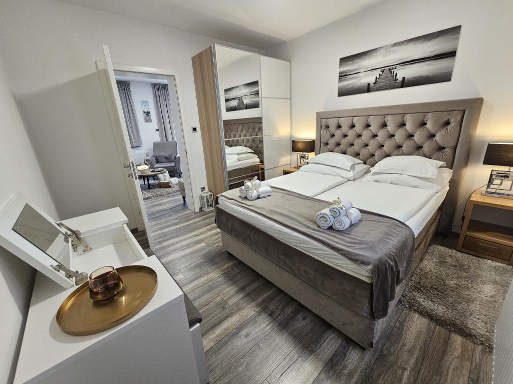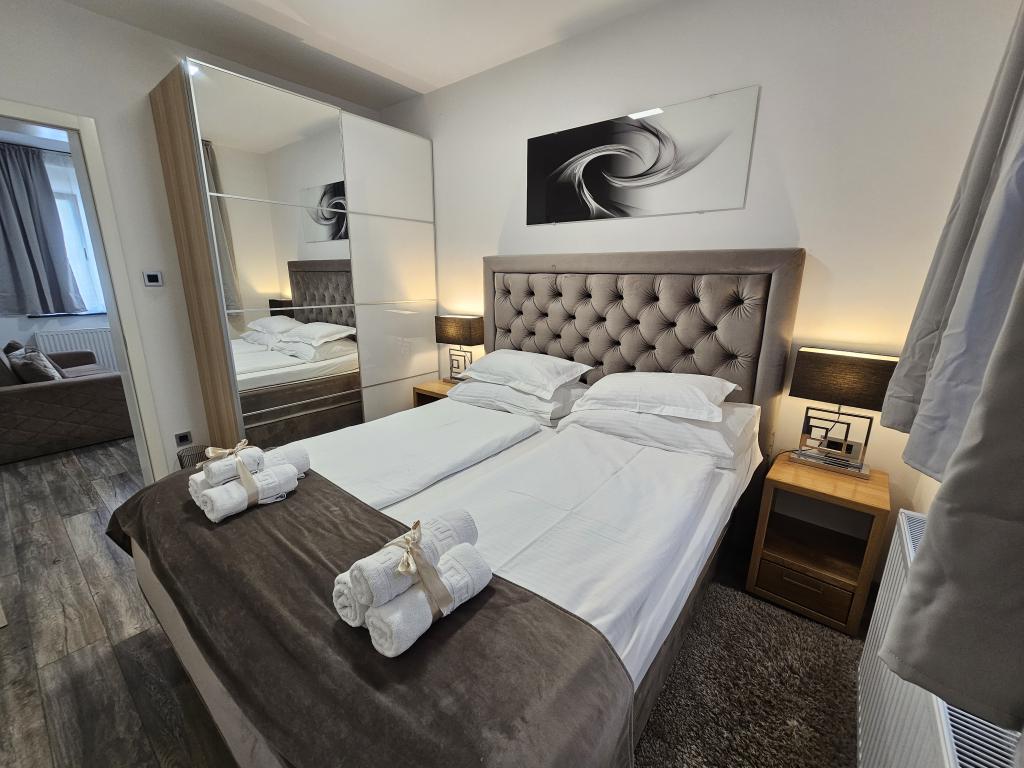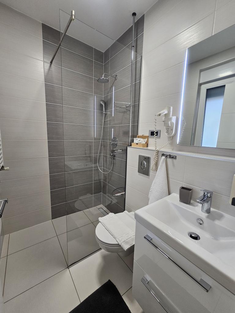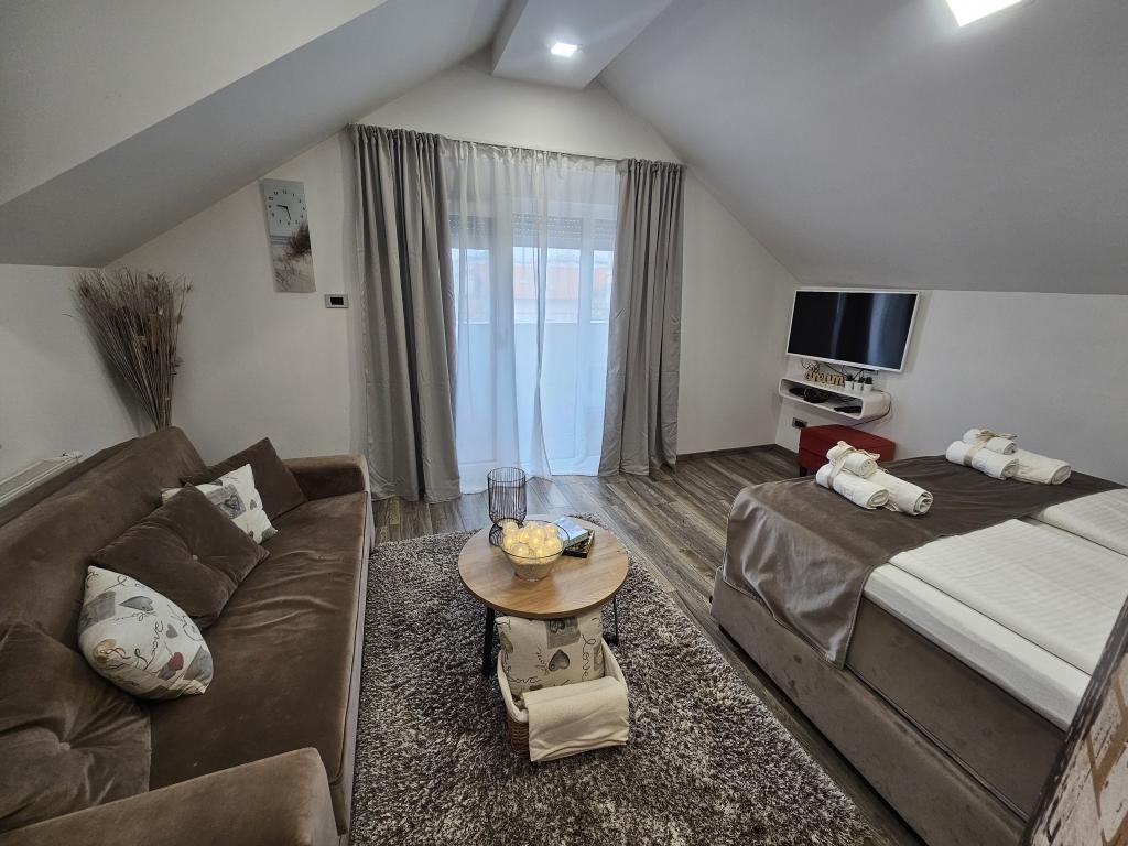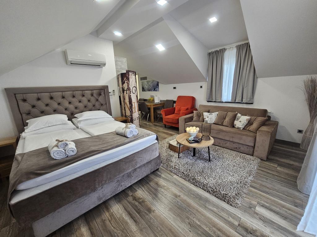 Villa Agram ligger i en stille gade (adresse: Poljanička 2a) i det gamle Trešnjevka-kvarter i Zagreb. Anlægget er helt nybygget og åbnet i 2018. Vores gæster tilbydes gratis parkering i bygningen og foran den. Villa Agram indeholder 5 luksuriøst indrettede lejligheder. Den nærmeste butik ligger 300 m fra bygningen, mens restauranter og caféer er omkring 500 m væk. Ljubljanica-rundkørslen ligger omkring 800 m fra Villa Agram, så gæsterne kan tage til centrum eller en anden del af Zagreb med sporvogn eller bus. Sporvogn nr. 12, som kører direkte til Trg ban J. Jelačić, ankommer til sin destination på kun 19 minutter. Hver gæst bliver mødt med nyvasket og rent sengelinned og et sæt håndklæder. Badeværelserne er fuldt udstyret med alt badeværelsestilbehør (toiletpapir, flydende og hård sæbe, brusegel, hårbalsam, badehætte, badetøfler, kam, kosmetiksæt) og en vægmonteret hårtørrer.