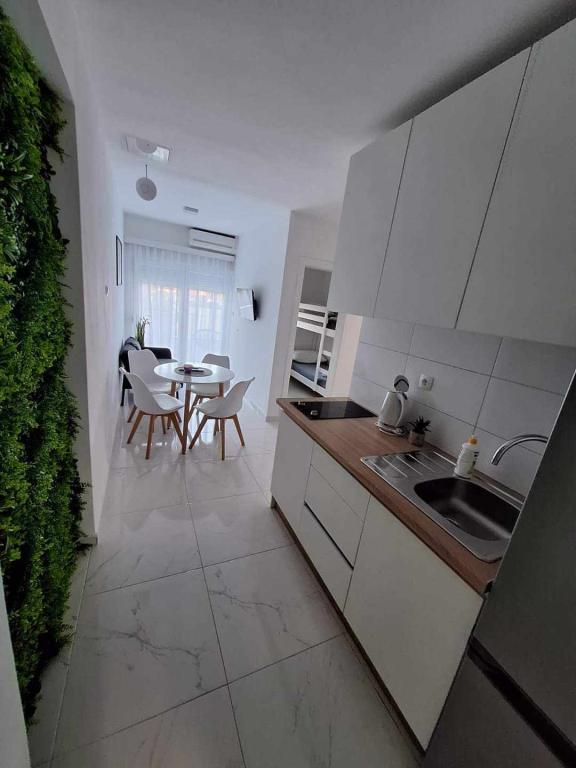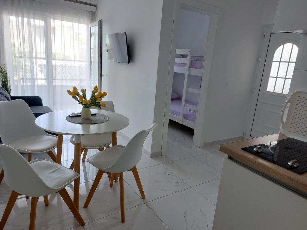 Vi tilbyder adskillige moderne udstyrede lejligheder, der er ideelle til familier og grupper. Aircondition, tv, gratis Wi-Fi, grillfaciliteter og privat parkering. Afstanden til stranden er 200 meter. Hvis du ønsker vores tilbud eller planlægger en fælles ferie med flere familier, er du velkommen til at sende os følgende oplysninger: • antal personer/familiemedlemmer, • ønsket opholdsdato, • særlige behov eller ønsker (hvis du har nogle). Ankomsttidspunkt i lejligheden er efter kl. 13:00 og afrejsetidspunkt er kl. 10:00. Baseret på dine oplysninger udarbejder vi et passende og personligt tilbud, der er ideelt til din ferie. Vi står til din rådighed for yderligere oplysninger og reservationer.