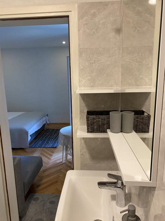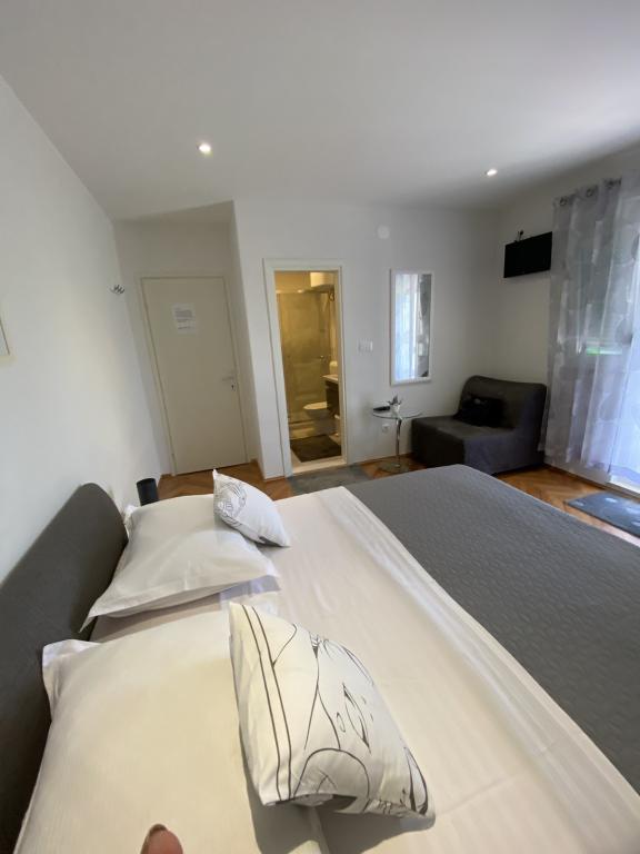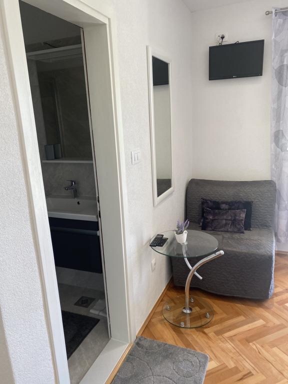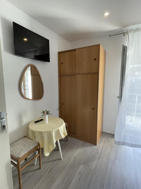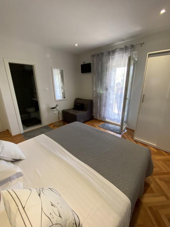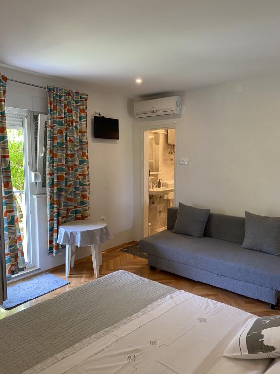 De gæstfrie og muntre værter byder dig hjertelig velkommen i den behagelige atmosfære i et familiehus i en af de smukkeste dele af Makarska Riviera. Beliggende 100 m fra centrum af den berømte dalmatiske by og på den anden side af gaden fra det gamle franciskanerkloster, tilbyder denne komfortable ejendom alle ingredienserne til en afslappende ferie: et rent og rummeligt værelse, udstyret køkken, aircondition og tv, terrasse og sikker parkeringsplads. Smukke stenstrande, kun 2 minutter fra boligen, en række gastronomiske faciliteter og et meget behageligt klima satte en stopper for i.