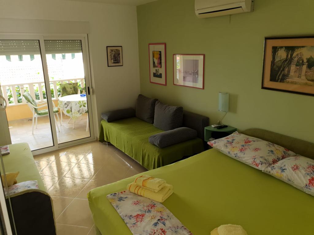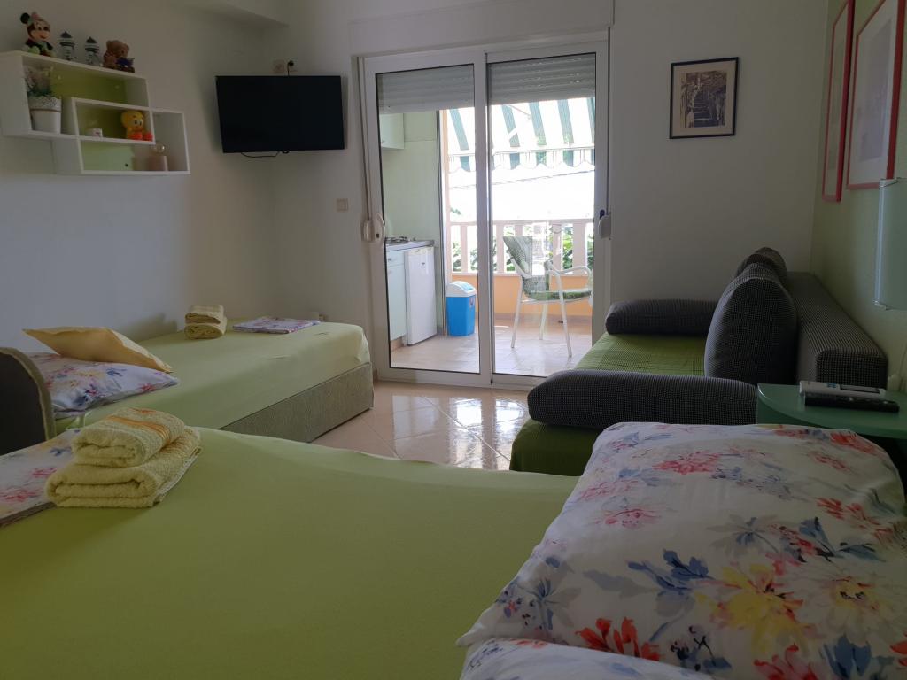 Lejlighederne ligger i en rolig del af Zaostrog. De ligger 70 meter fra stranden. Lejlighederne har et køkken på balkonen, som tilbyder en smuk udsigt over havet og området. Der er egen overdækket parkeringsplads i bygningen. I gården er der en grill til rådighed for gæsterne.
