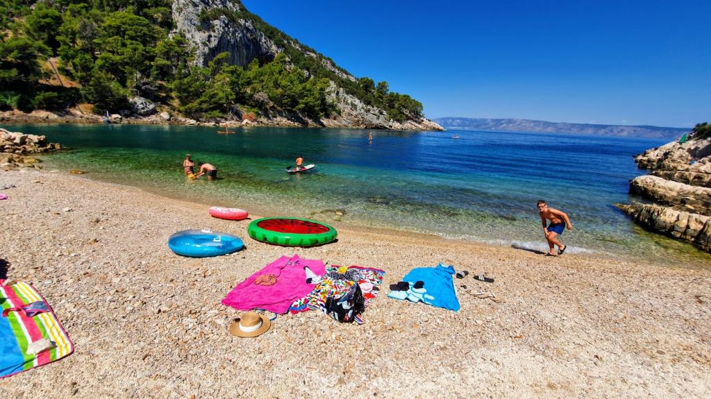 Lejligheder Zaninović ligger i den smukke bugt Vela Stiniva, som ligger på den nordlige side af øen Hvar. Det er 3 km væk med asfaltvej fra Zastražišće. Rent hav, stor stenstrand og uberørt natur er ideelle betingelser for en ægte ferie. Der er mange klatrestier, en fodbold- og basketballbane i bugten.