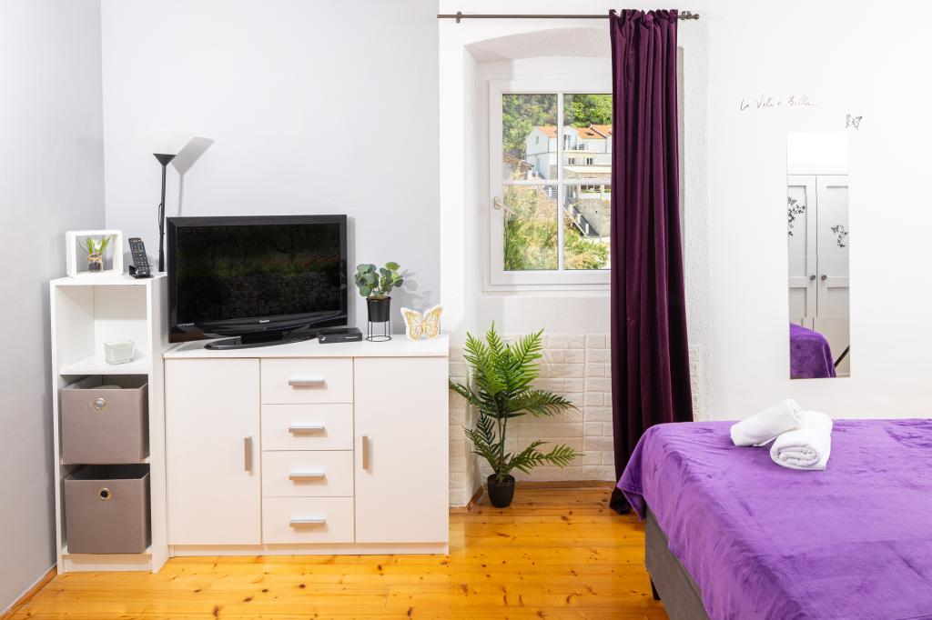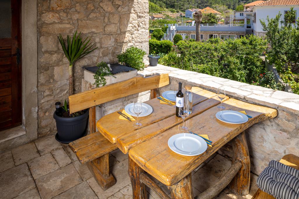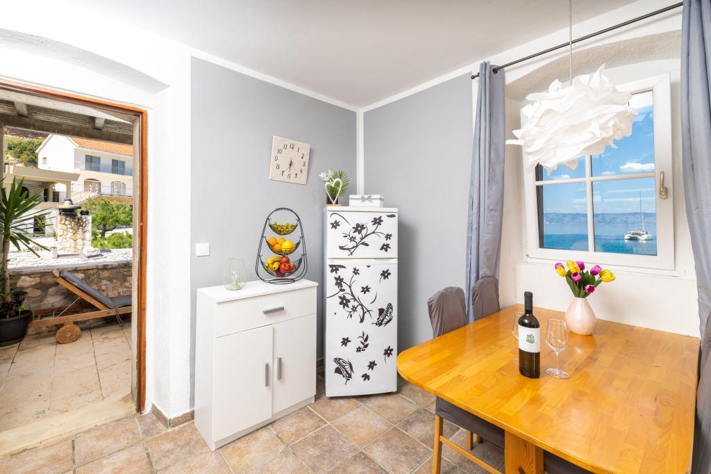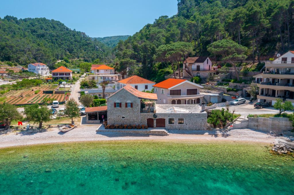 Fuldstændig møbleret lejlighed i en stille bugt på den nordlige side af øen Hvar. Lejligheden indeholder værelser med dobbeltsenge, køkken udstyret med alle nødvendige apparater og redskaber, badeværelse med bruser, terrasse med fantastisk havudsigt. Håndklæder og sengelinned er inkluderet i prisen. Stranden ligger ved siden af lejligheden og er yderst velegnet til børn. I Vela Stiniva-bugten vil du nyde det krystalklare hav, lugten af fyrreskoven og solen, der er der hele dagen i sommermånederne. Vela Stiniva-bugten ligger 20 km fra Jelsa. I bugten er et af de to klatreområder på øen Hvar. Huset, hvor lejligheden ligger, ligger lige ved havet samt en restaurant, hvor du kan nyde dalmatisk mad og lokal vin.