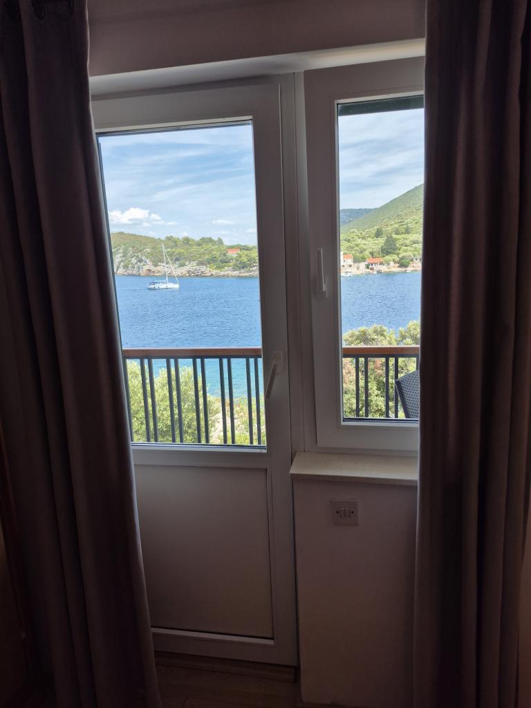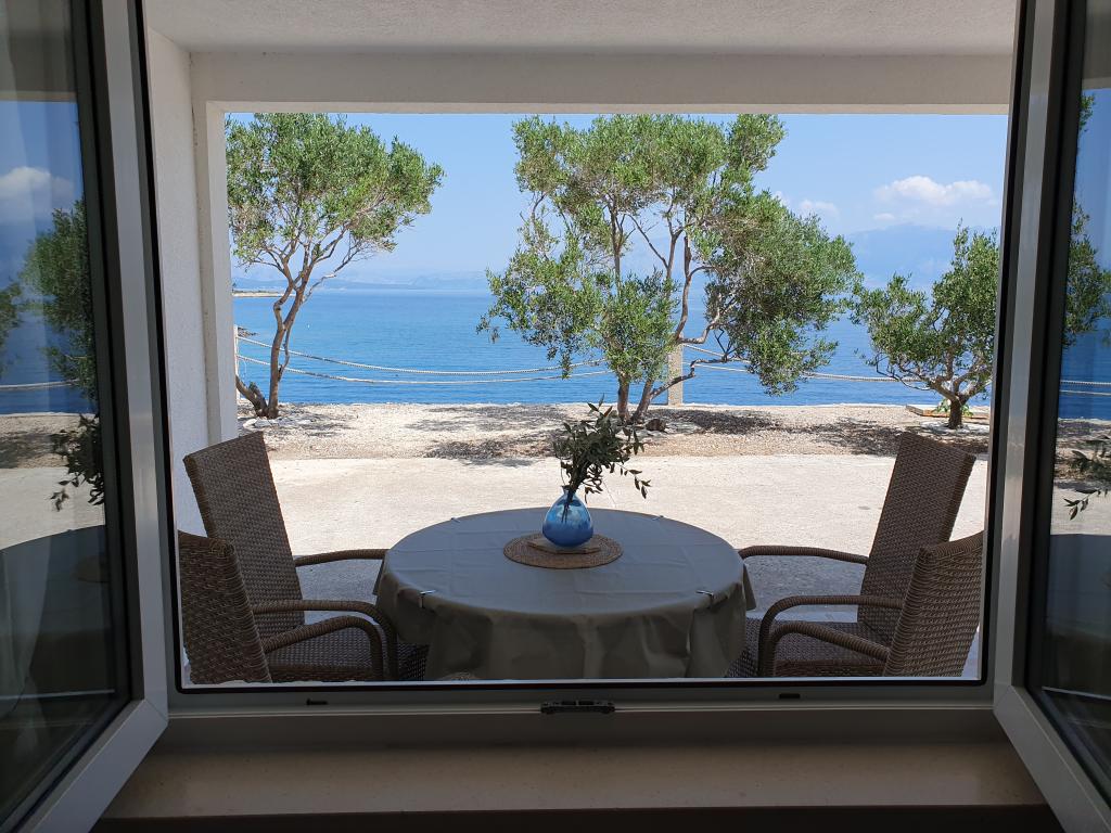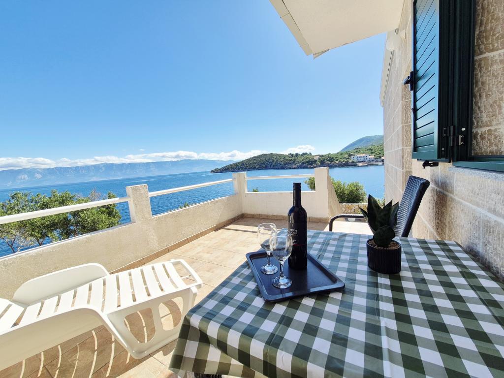 Den fuldt udstyrede lejlighed Vinka er beliggende i en stille bugt ideel til din ferie. Det er beliggende første række til havet, har en terrasse og en balkon med en smuk udsigt over havet og bugten. Der er 20 m fra lejligheden til swimmingpoolen Alt dette gør det til et perfekt sted for afslapning væk fra larm og stress!