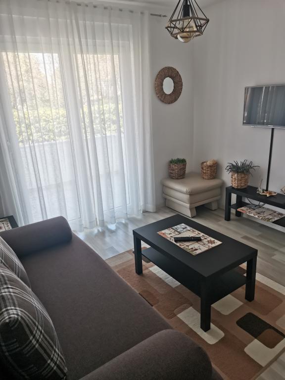 Lejlighed Bonaca er beliggende i et familiehus med 4 boligenheder, høj stueetage, ny bygning. Huset ligger i en rolig del af byen. Det er i umiddelbar nærhed af TZ Zaton, butikker, legeplads, værtshus og bageri. Sandstrandene, som er et glimrende valg for familier med børn, ligger 15 minutters let gåtur eller 1 minuts kørsel i bil. Lejligheden består af: et soveværelse med dobbeltseng, et badeværelse med bruser, et køkken, en stue og en udendørs overdækket terrasse. Smart TV, mikroovn, brødrister, hårtørrer, mixer, babymad, gynge (babybjorn) er til rådighed for gæsterne, og det er også muligt at bruge den udendørs grill og havemøbler (bord og bænke). Parkering tilbydes i bygningens gård. Lejligheden er et glimrende valg for en familie med et eller to børn. De offentliggjorte billeder viser den faktiske tilstand, og hvis du har brug for yderligere information, er du velkommen til at kontakte os.