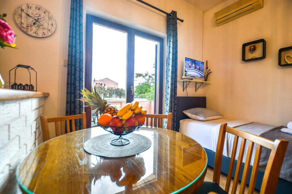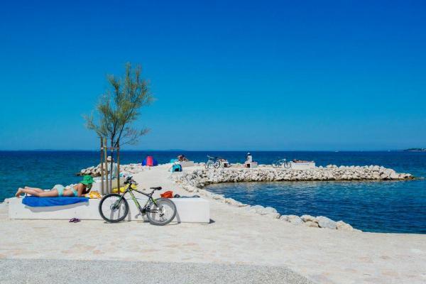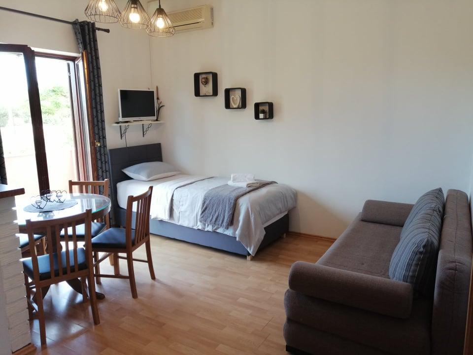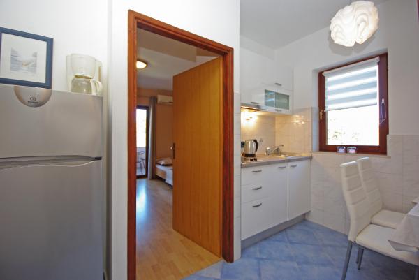 Lejligheden er ren, (håndklæder og sengelinned). En stor terrasse omgivet af frugt og smukke blomster. Stranden er ideel til børn ... 2 min. Gåtur. Ejerne er vidunderlige mennesker, altid på servise. Renata er den bedste. Vi valgte dine lejligheder på grund af gode recensioner, det var rigtigt. Vi ville være som dine gæster også næste år. Tak for alt, din gave er en overraskelse.