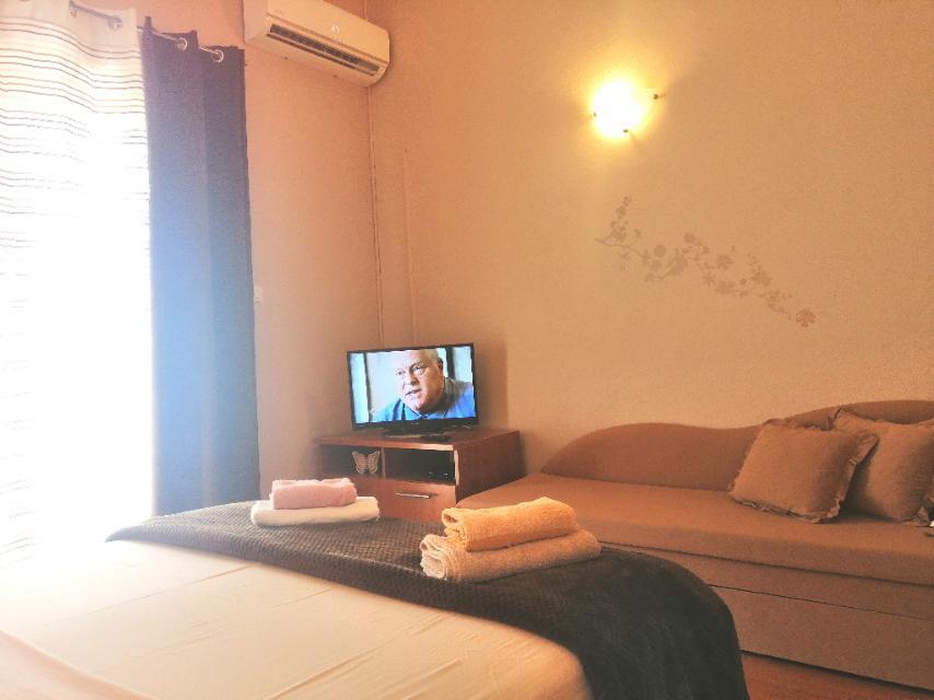 Vi boede der i en uge. Beliggenheden er vidunderlig. Lejligheden er fremragende, ren, meget veludstyret og har to balkoner, hvoraf den ene har en smuk udsigt over havet. Der er myggenet for vinduerne overalt. Havet er ekstremt rent, med sandbund. Ejerne er meget venlige. Ekstremt god pris for en så velindrettet lejlighed. Jeg kan virkelig anbefale den!
