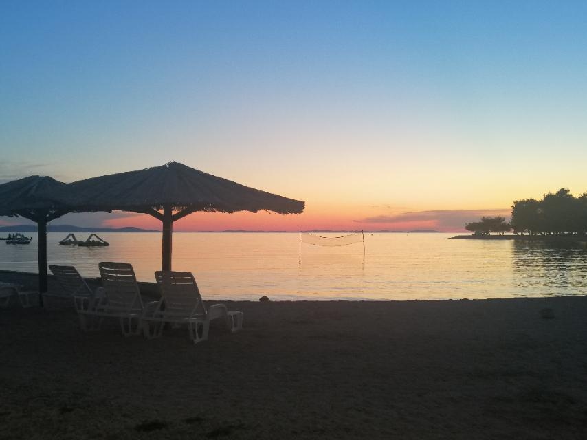 Alt er som på billedet.. Rent, behageligt, komfortabelt, alt inklusive... Alt du behøver er denne... Brødrister, elkedel, ovn, 5-gas komfur, stor opvaskemaskine, køleskab, fryser, you name it.. Ejerne er behagelige, uanset hvad du har brug for, er de der. De tager sig af alt og finder en hurtig løsning på alt... Hatten af... Så bager, fitness på stranden, spil på stranden, markeder på stranden, cafe og isbutik på stranden, pandekagemaskine, toilet på stranden... Alt dette fra lejligheden 150 m... Verden. .. Stranden er små småsten, og så mindst 300 m vand lidt over knæene... Ideel til børn... Om aftenen efter kl. 18.00 kan du gå rundt i Zaton camping resort park gratis Her kan du finde oppustelige spil, karuseller, restauranter, markeder... Vi kommer derhen