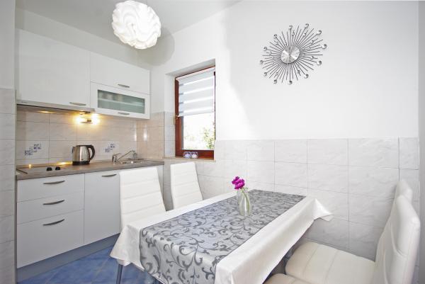 Lejligheden var meget ren og duftende. Ideelt arrangement af værelser, balkon med havudsigt. Stranden ligger i nærheden. Meget venlige og hjælpsomme ejere, der bor i dette hus. Vi modtog en kop kirsebær fra hjemmet haven og en candy bar. Gæsterne kan hente afgrøder fra haven (grøntsager og frugter). Der er mange muligheder for cykling. En dejlig ferie i begyndelsen af juni.