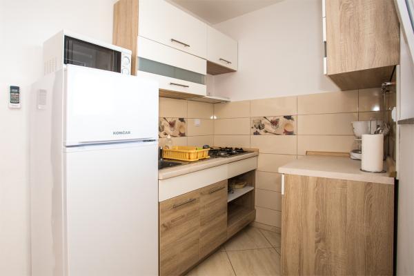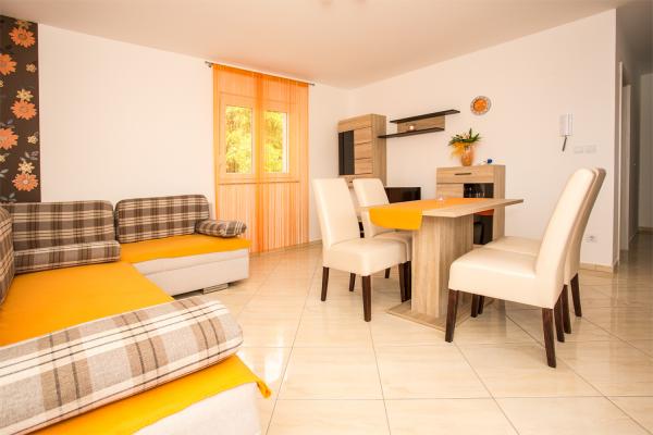 Vil du finde fred, krystalklart hav, rent undervand, skygge af fyrreskove og uforglemmelige solnedgange?! Hvis dit svar er JA, så er Zaton det ideelle sted for din ferie, og ophold i vores moderne indrettede og fuldt udstyrede lejligheder kategoriseret med **** vil gøre din ferie perfekt. Vores lejligheder ligger kun 30 m fra havet, 50 m fra stranden og 300 m fra indgangen til det berømte Zaton Holiday Resort, hvis strand er markeret med det Blå Flag, et symbol på et bevaret, trygt og behageligt miljø. Hver lejlighed har havudsigt, sikker parkering og mulighed for at bruge en grill. Lejlighederne har 1 soveværelse, et badeværelse med bruser, et fuldt udstyret køkken, en stor stue med ekstra senge og en terrasse, hvor du uforsigtigt kan drikke dine første morgenslukke af kaffe, mens du ser på havet. Til de mindste har vi en trampolin i gården. På grund af det lave og varme hav er Zatons strande særligt attraktive for familier med børn.