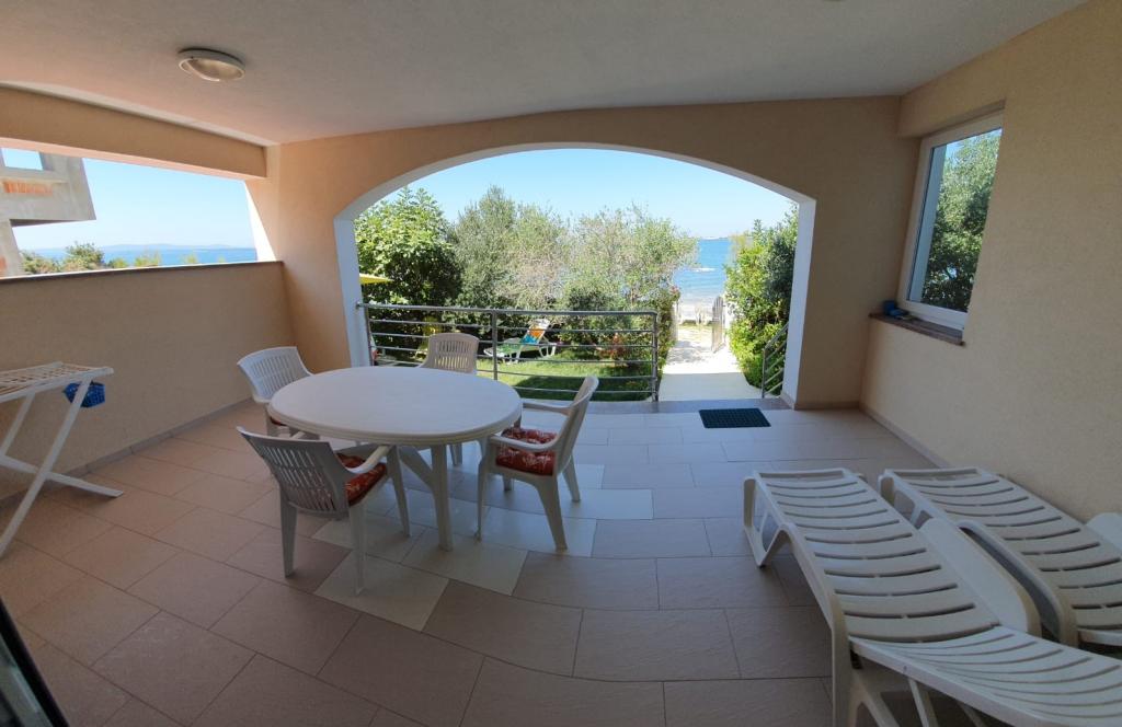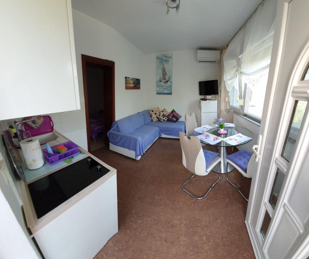 Smuk lejlighed lige ved havet ... du kan lytte til havets brusen, mens du drikker din morgenkaffe med en smuk udsigt over kysten. Lejligheden er ren, pæn og udstyret med alle mulige ekstrafunktioner, der gør dit ophold lettere. Smuk overdækket terrasse, gyngestol i skyggen af oliventræer med udsigt over havet ... perfekt til at læse en bog. Værterne er venlige, hjælpsomme og tilgængelige. Stranden foran lejligheden er uden folkemængder og trafik, perfekt for børn. Tak for alt! Vi ses næste år!